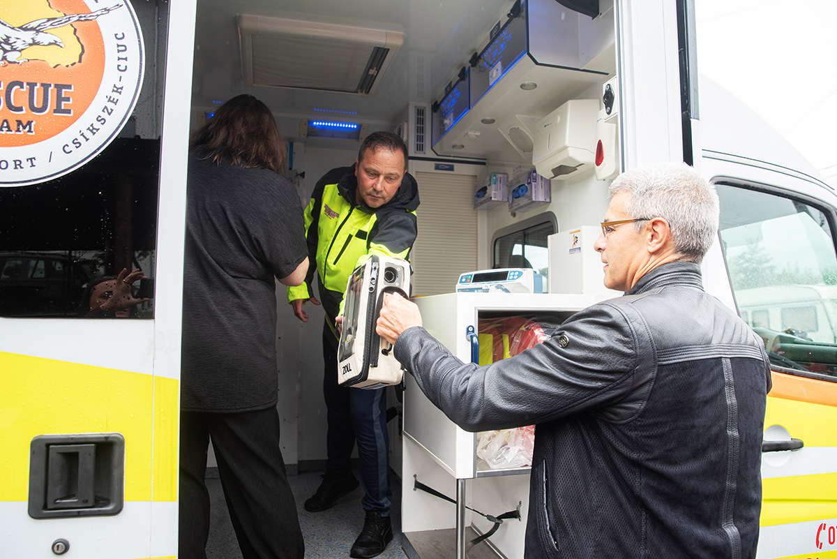 A mentőautó már csupán néhány létfontosságú orvosi eszközre várt: az újszülöttek számára is alkalmas lélegeztetőgépre és elektromos gyógyszeradagolóra. A 90 ezer lej értékű berendezések – amelyeket a Csíki Vállalkozók Egyesülete és Magyarország Csíkszeredai Főkonzulátusa által szervezett XI. Jótékonysági Katalin-bál bevételéből vásároltak meg – mostanra megérkeztek, és szerdán hivatalosan is átadták, illetve beszerelték az autóba. Ezzel a projekt műszaki része lezárult – már csak a központi hatósági engedélyezés van hátra ahhoz, hogy a megye első, C2 típusú újszülött- és gyermekmentője szolgálatba állhasson – ismertette az átadáson Péter Szilárd, az Erdély Mentőcsoport Csíkszéki Mentőcsapatának tagja.