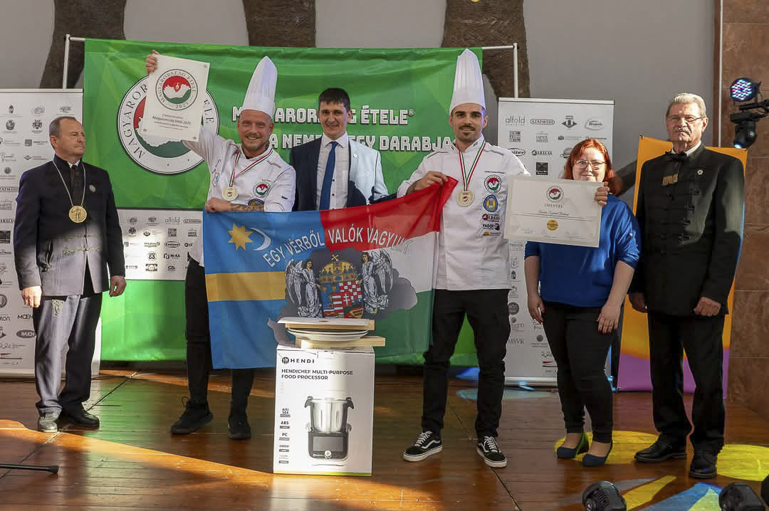 – Miután leadtuk a receptet, következett az elődöntő, ahonnan továbbjutottunk a több mint húsz nevező közül. Április 27-én szervezték a verseny döntőjét Magyarországon, ahol három óránk volt arra, hogy elkészítsünk nyolc adag főételt és húsz adag falatkát, majd mindezt ki is tálaljuk. Akkora adrenalinnal vágtunk neki a döntőnek, hogy mindez másfél óra alatt sikerült. Nyolctagú zsűri értékelte az ételt, közöttük magyarországi séfek, mesterszakácsok és olimpiai bajnokok. Varga Károly mesterszakács, a zsűri elnöke azt mondta nekünk, hogy ebben az ételben nem kapott hibát, majd kihirdették, hogy a mi ételünk nyerte a Magyarország étele 2025 versenyét.