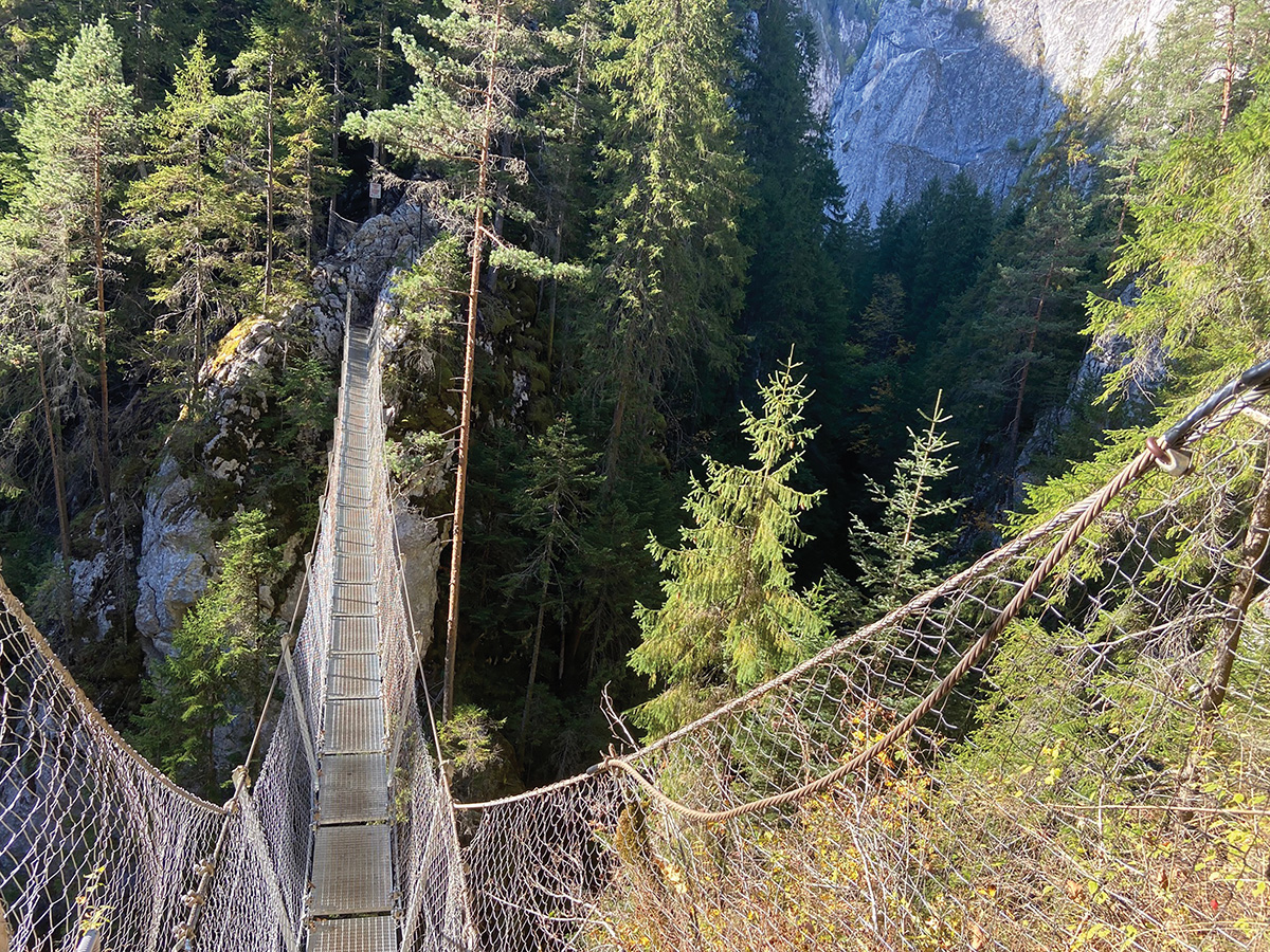 A látványt és az izgalmakat fokozza, hogy még a túra elején át kell kelni egy függőhídon, majd jóval feljebb egy igazi országos kuriózum várja a kirándulót: egy másik függőhíd, amely 34 méter magasságban feszül a patak fölött, egy 36 méteres szakadékot hidalva át. Egyébként ez az új függőhíd lehetővé teszi a Mária-kő megközelítését a Magyarok hídja irányából. Vannak, akik csak a függőhíd megtekintéséért jönnek fel idáig (az átkelőről mesésen szép a látvány, főleg, ha nincs tériszonyunk), de jó kis kaptató legyőzése után a Mária-kő kilátópontjait is elérhetjük, ahol a lábunk alatt lesz a Békás-szoros, felkereshetjük a Gyilkostó Adventure Egyesület és a Hargita megyei hegyimentőszolgálat által pár éve elhelyezett panorámakabint is. Elmehetünk a Fekete-torony irányába, tehetünk körtúrát is továbbmenve a bal parti ösvényen, akár úgy, hogy kiérünk az országútra, akár úgy, hogy a Mária-kő túloldalról való megmászása után, a függőhídon át térünk vissza a kiindulópontunkra.