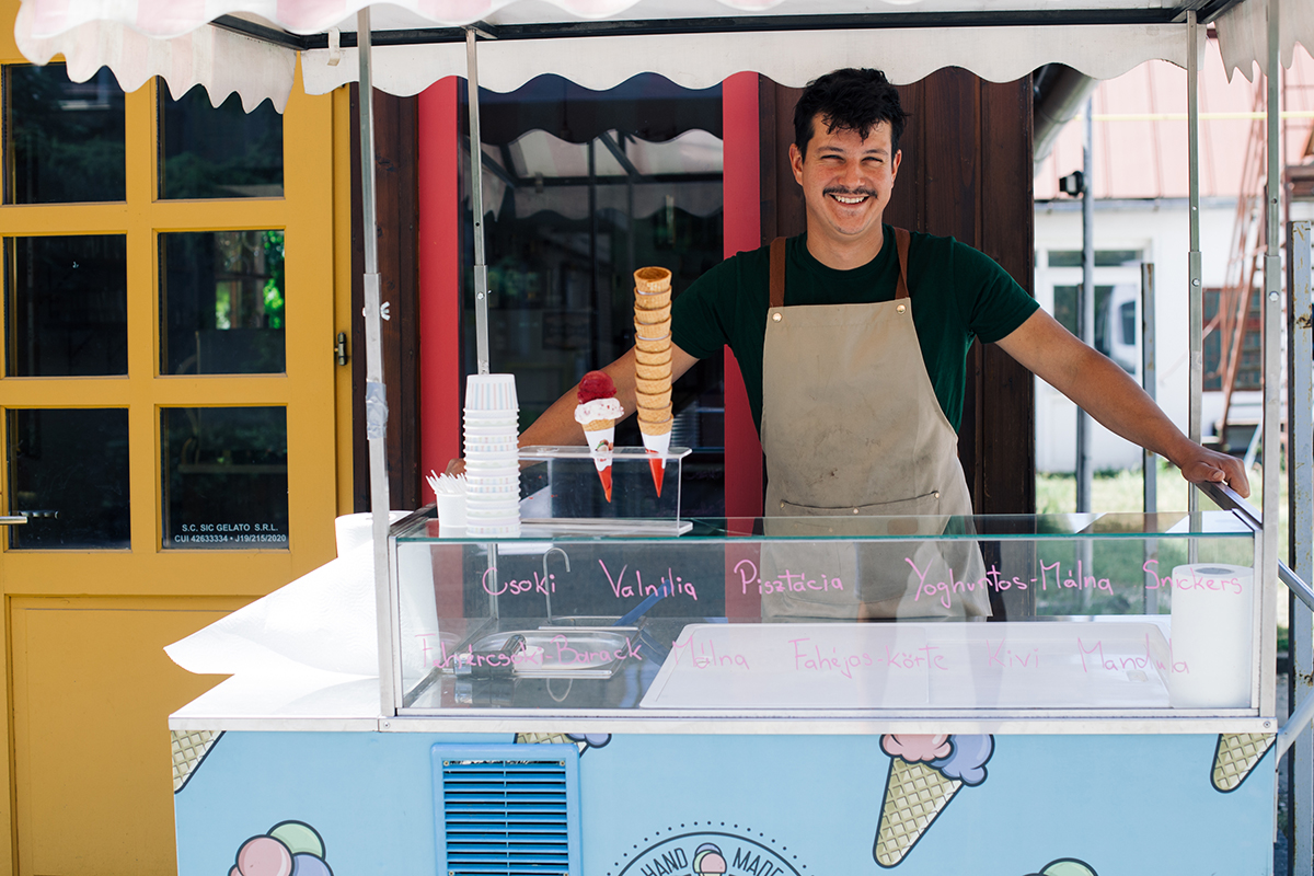 – A Kolozsváron eltöltött évek alatt kerültem közelebb a gasztronómiához, ugyanis az egyetem és a zenélés mellett elkezdtem dolgozni a Bulgakov kávézóban, először szakácssegédként, majd pincérként. Élveztem az éttermi életet, és annyira megfogott ez a világ, hogy a későbbi munkáim is éttermekhez kötődtek, dolgoztam Budapesten a Trattoria Pomo D’Oróban is. Szülői segítséggel sikerült megvásárolnom az étterem egyik használaton kívüli fagylaltgépét, és ekkor kezdett körvonalazódni az a vállalkozásötlet, amelyet ma is működtetek.