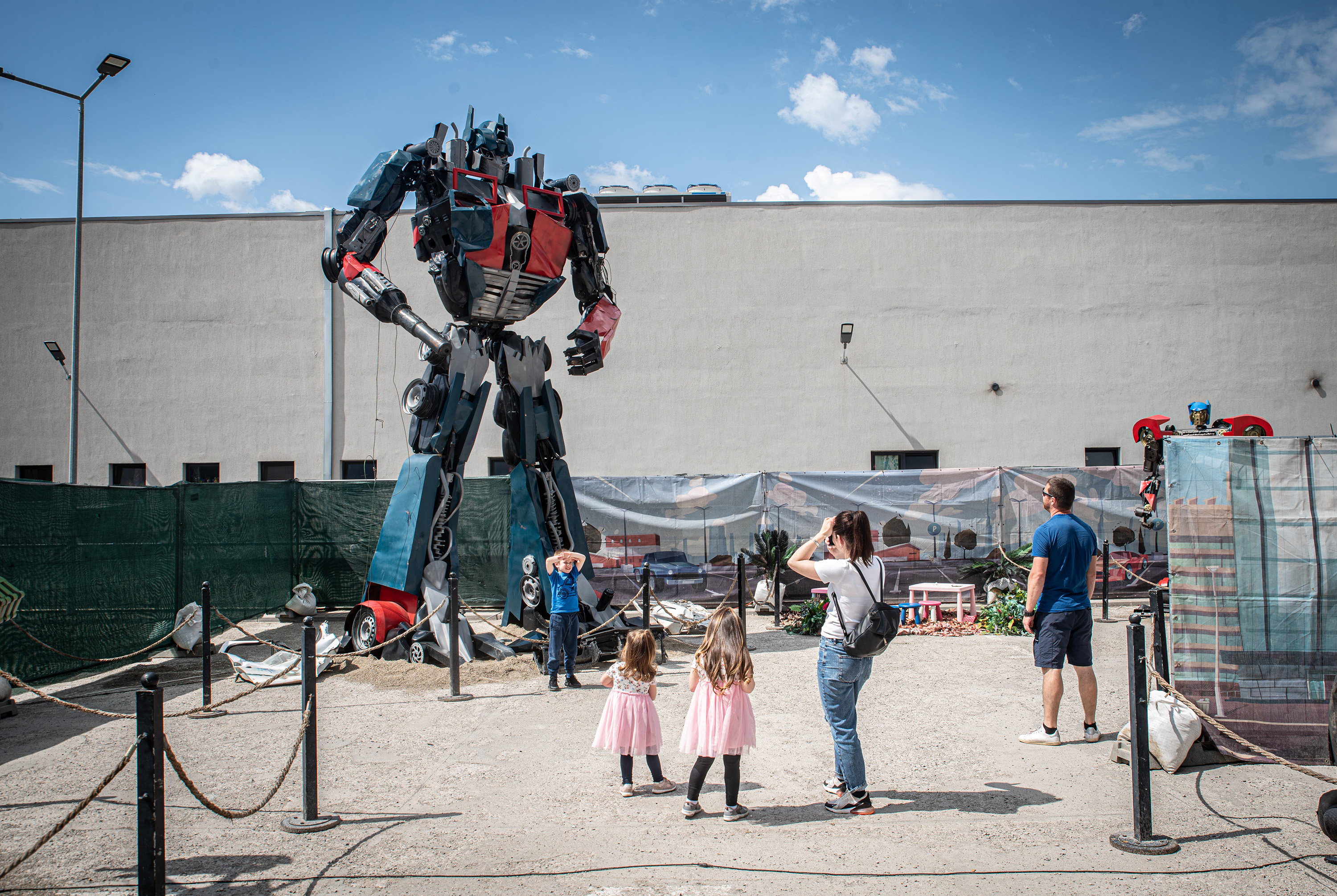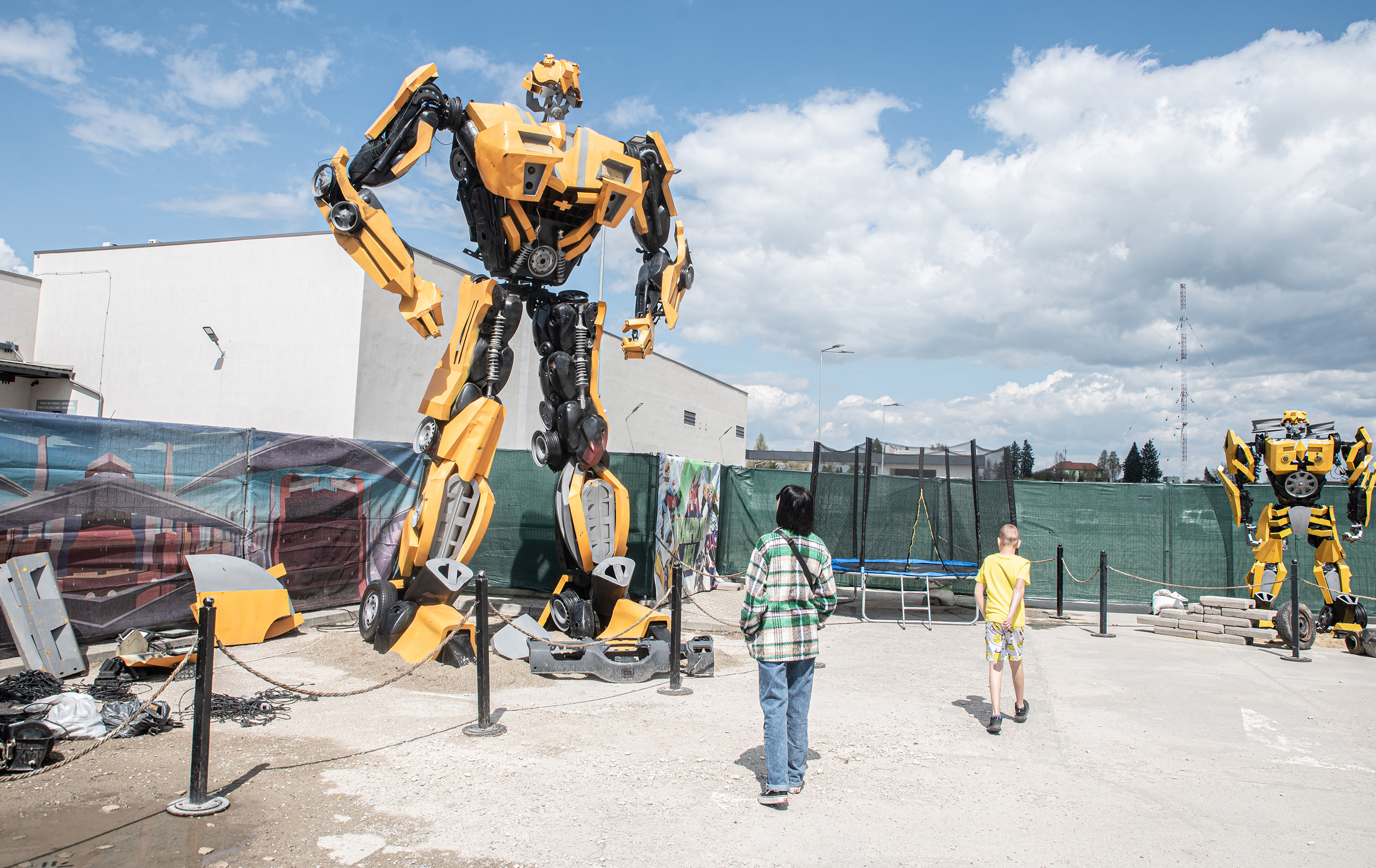 Nyolcméteres robotóriások lepték el a csíkszeredai bevásárlóközpont parkolóját
