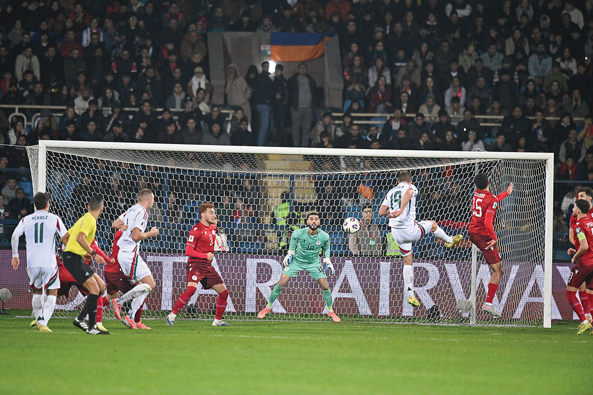 A második félidőt a házigazdák kezdték lendületesebben, ezzel együtt az örmény szurkolók is nekiveselkedtek: a petárdák sűrűbben robbantak, pergett a dob, a hazai közönség szinte vezényelte a meccset. A 65. percben Spertsyan lövése centikkel szállt fölé, a levegő vibrált – nemcsak a hangulattól, hanem a lelátót belengő füsttől is. A 77. percben a frissen beállt Tóth Alex lőtt veszélyeztetettet, néhány perccel később viszont az ő eladott labdájából az örmények kihagyták a meccs legnagyobb ziccerét. A hosszabbításban még Szoboszlai próbálkozott szabadrúgásból, de fölé szállt. Az utolsó örmény támadásnál a labda a kapu előtt megpattant az örmény csatár lába előtt – talán egy vakond segített be a magyaroknak.