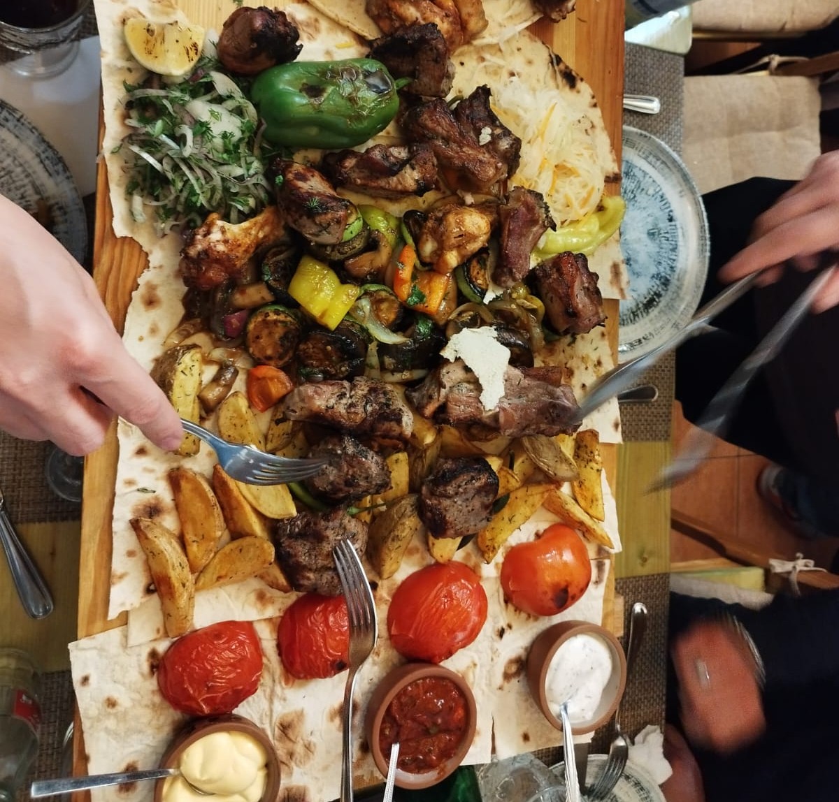 A túra során alaposan megéheztem, s egy nem vegetáriánusnak maga a földi paradicsom Örményország, ahol a hús minden étkezés alapja. Húst adnak hússal, ha pedig valami zöldet is kapsz a tányérodra, az valószínűleg csak dekoráció. A gránátalmalét viszont minden utcasarkon árulják – a gránátalma az örmények nemzeti gyümölcse, a termékenység, az élet és gazdagság szimbóluma.