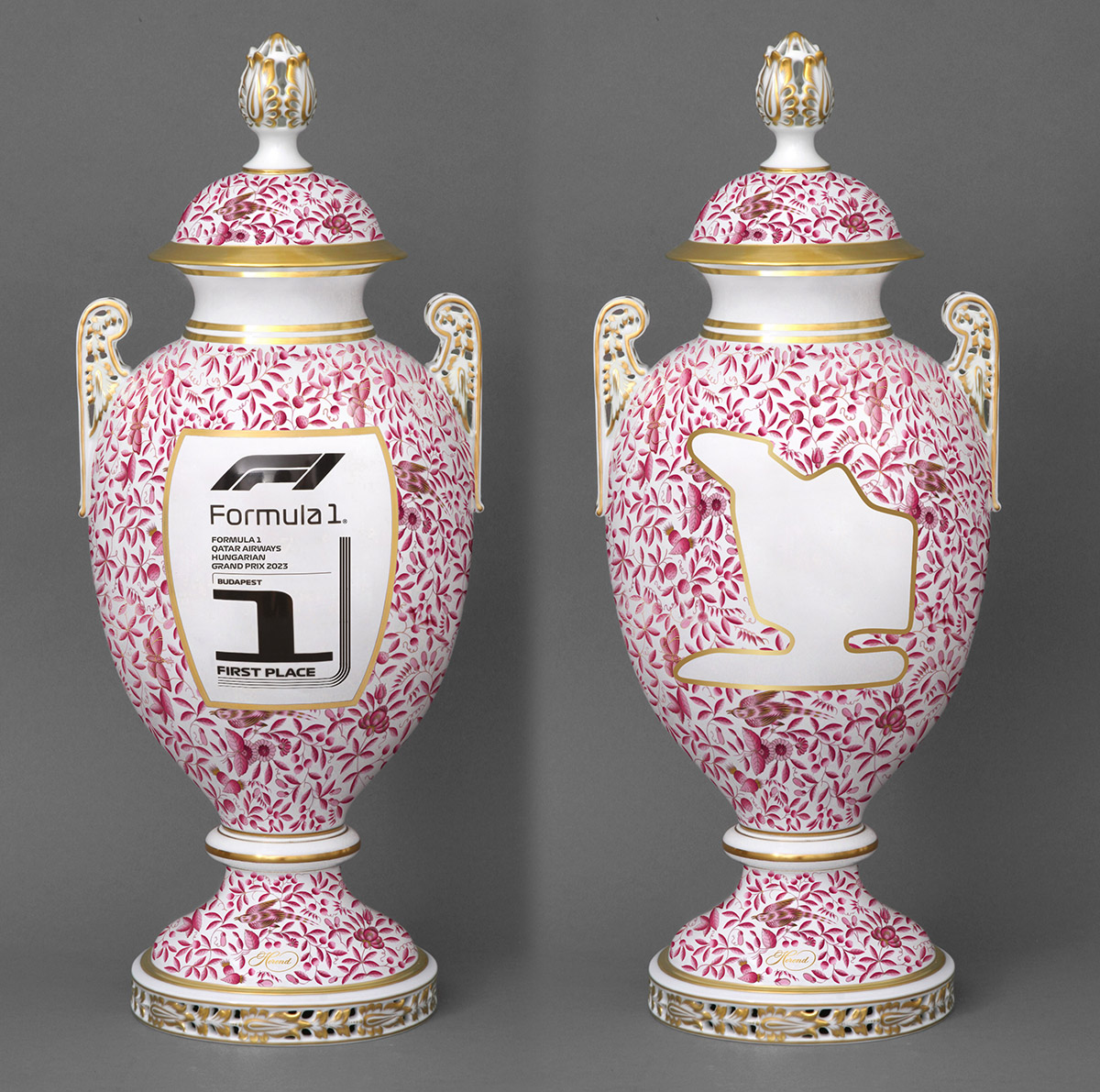 A dobogón nemcsak pezsgő és érem vár: a győztesek a legendás, kézzel festett Herendi porcelántrófeát emelhetik magasba. Minden darab egyedi, minden ecsetvonás magyar mesterek munkája. A pilóták körében ez az egyik legnagyobb presztízsű díj – nemcsak szépsége miatt, hanem mert a világ egyik legritkább F1-es relikviájának számít.