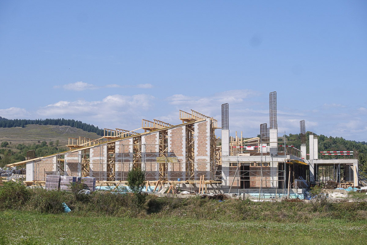 A nyári hónapokban látványosan haladt a munka a csíkszentkirályi tanuszoda építőtelepén: a kivitelező a pince vasbeton szerkezetének megöntése után az épület vasbeton szerkezetének felállítását is befejezte, a legutóbbi – jelenlegi munkafázisban – pedig a tetőszerkezet kialakítását készíti elő.