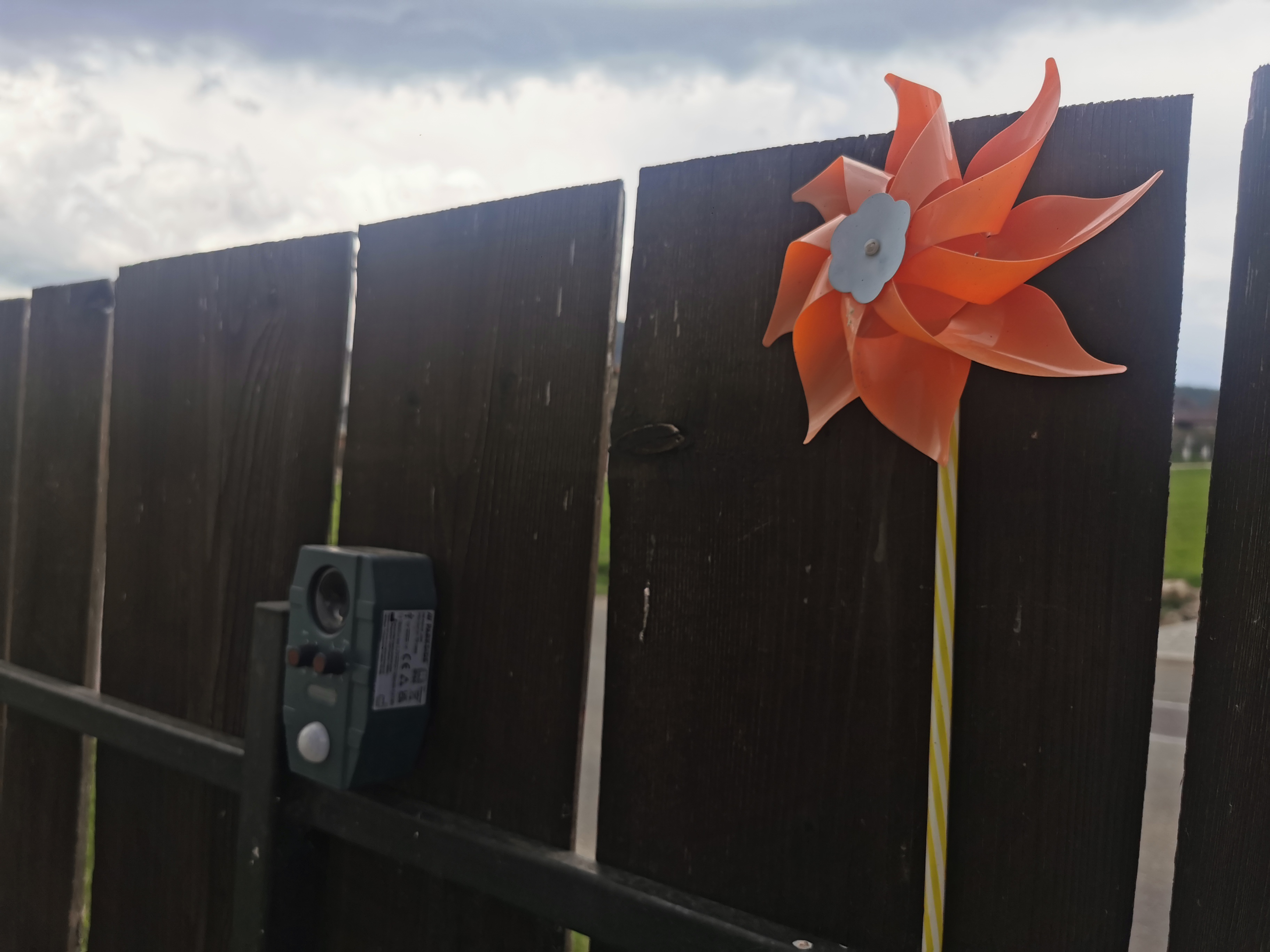 A madarak rendkívül figyelmesek, minden változást észrevesznek a környezetükben, ezért is hatásosak ellenük a mozgó, csillogó, zörgő eszközök. Az egyik legegyszerűbb megoldás az alumíniumtálca, CD-lemez vagy üdítősdobozok madzagra fűzése, amelyeket a kert különböző pontjaira érdemes kiakasztani. A szél hatására ezek zörögnek, forognak, csillognak, amit a madarak nem kedvelnek. De akár „házi madárijesztőt” is készíthetünk: egy régi ingbe, kabátba töltött szalmabábu karjaira akasszunk fényvisszaverő szalagokat, régi CD-ket. Hetente érdemes kicsit átalakítani vagy áthelyezni ezeket, a madarak ugyanis gyorsan hozzászoknak a riasztókhoz.