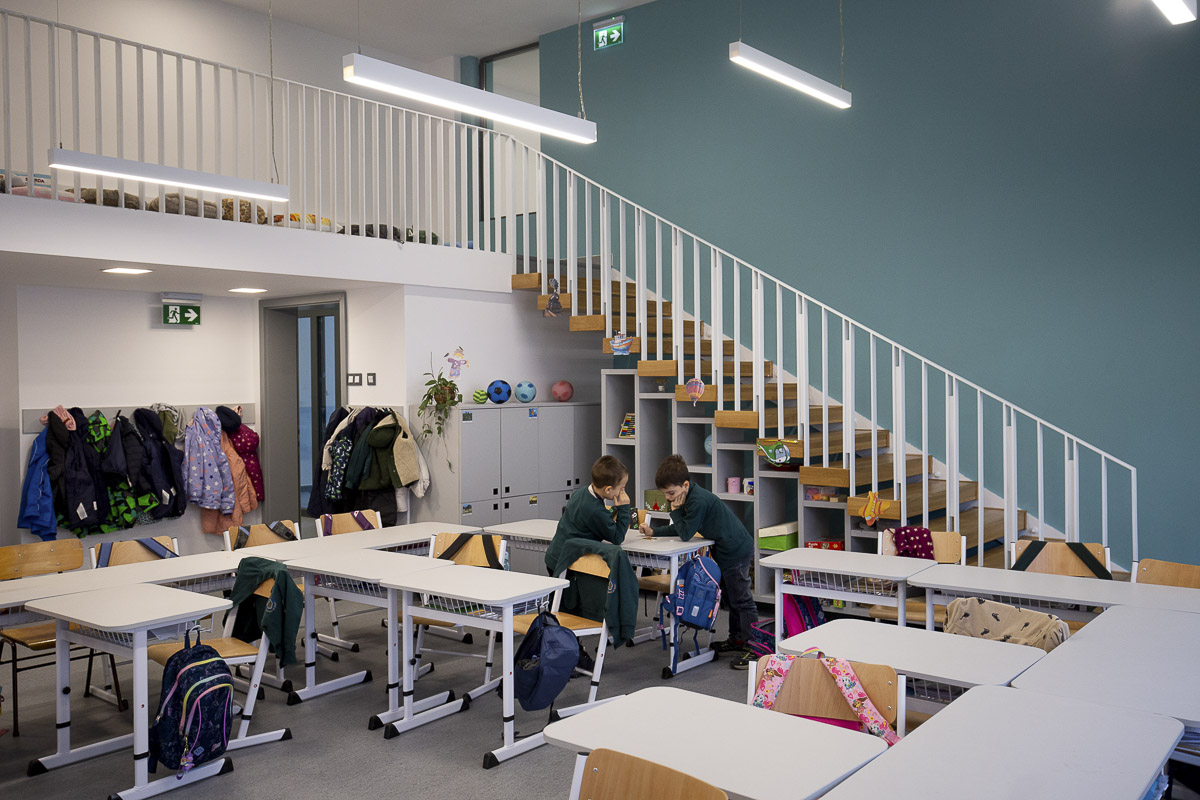 Tágas, világos terek, irigylésre méltó panoráma, nyugtató színek, funkcionális burkolatok – ezek voltak az első benyomásaink az épületben. A tornaterem akár egy sportcsarnok: öltözővel, zuhanyzóval, a folyosók a nálunk megszokotthoz képest szélesek és napfényesek, mert mindenütt hatalmas ablakok, üvegfelületek teszik levegőssé a teret. Épp ezért meglepődtünk, amikor beléptünk egy osztályterembe, mert az már kissé szűkösnek tűnt. Ezt megerősítette Sipos István is, mint mondta, 25-26 gyermeknek még viszonylag komfortosak, de ahová még be kellett szorítani egy padot, ott már nem annyira. Szikszai Réka tanítónő is így vélekedett, de összességében mégis elégedett az új helyszínnel. Tanítványai kórusban mondták, hogy minden nagyon tetszik, volt, aki a focipályát, és volt, aki az osztálytermet tartotta a „legvagányabb” dolognak az épületben.