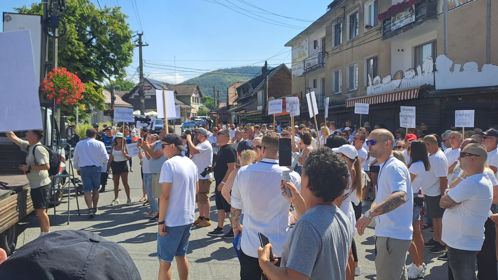 Fehér pólóban gyülekeztek a szombat délelőtt tíz órára meghirdetett békés tüntetésre a parajdiak: a békemenet a sóbánya székházáig vonult fel, ahol helyi vállalkozók, civilek szólaltak fel a bányakatasztrófa óta eltelt időszakkal kapcsolatos elégedetlenségüket kifejezve.