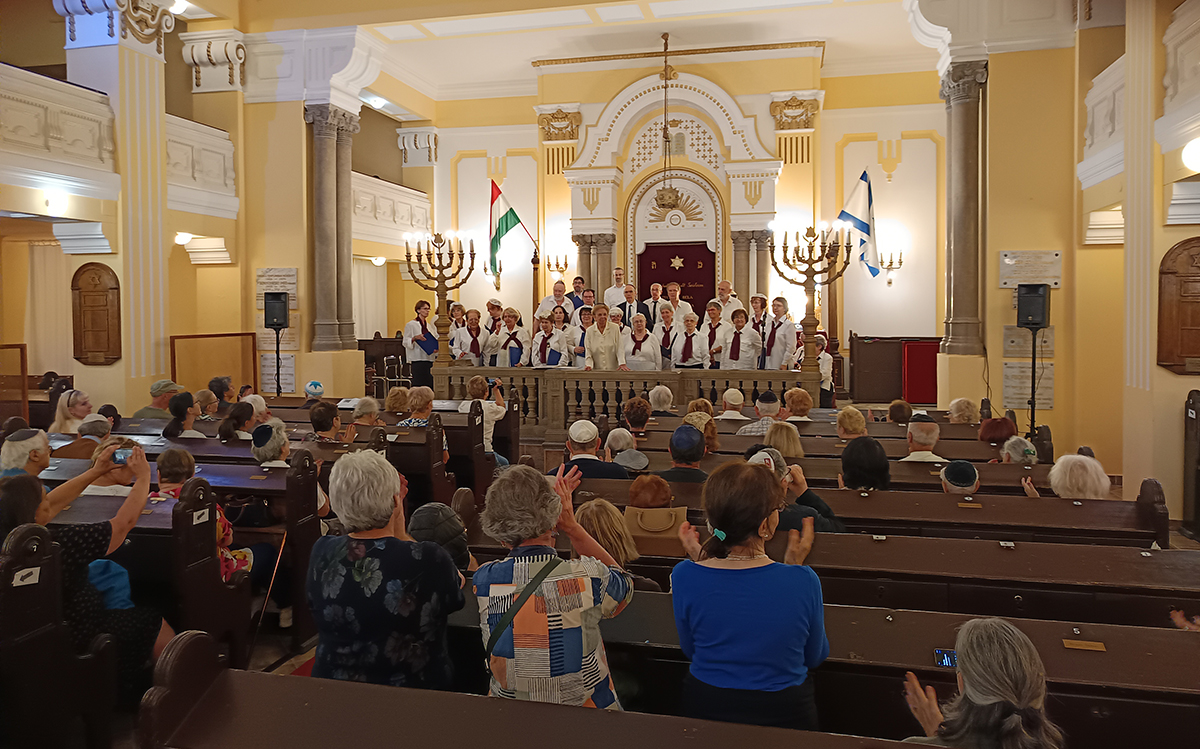 A javarészt idősebbekből álló kórus számára az egyórás koncert ugyancsak embert próbáló volt. Mégis lelkesen mutatták be a tudásukat, a szólisták között igazi „operahangokat” is megcsodálhattunk. A végén, szokás szerint a közönséggel együtt énekelték az ismert zsidó dalt: „Hevenu shalom a lehem”, azaz „Legyen a béke te veled”. Legyen ez a végszó, a Közel-Kelet felé tekintve a kórus a lelkünkből énekelt.