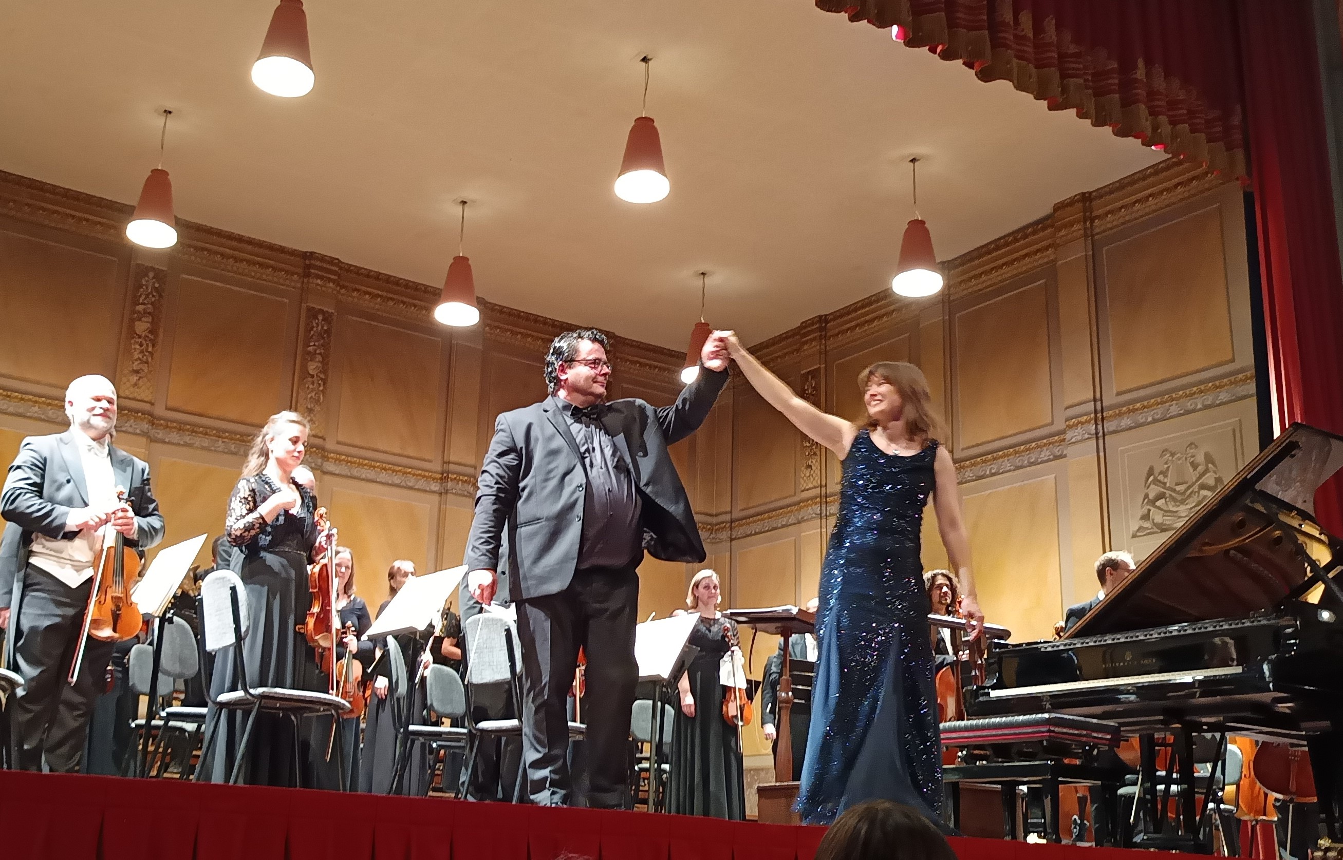 Estére – nem kis büszkeségemre – a nézőtér megtelt. A nyitányt udvarias taps fogadta, majd az ukrán zongoraművész következett. Zeneileg kiválót nyújtott, de játékát kicsit teátrálisnak találtam. A közönség nagy ovációval honorálta az előadást, ez részben a művésznek, részben pedig országának szólt. Anna Fedorova egy ráadással, De Falla Tűztáncának virtuóz zongoraváltozatával köszönte meg a publikum lelkesedését.