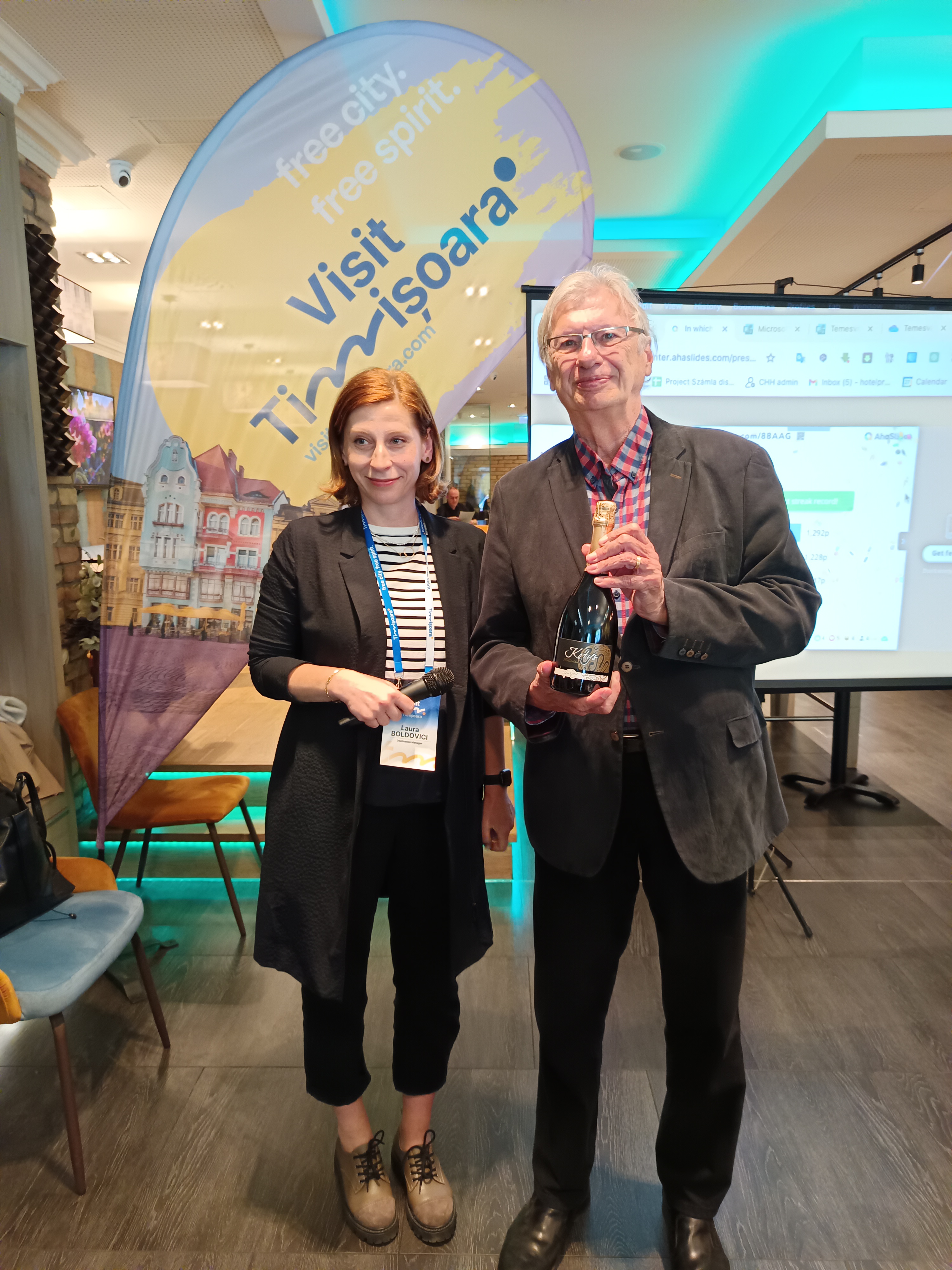 Úgy tűnik, Temesvár multikulturális hangulatát reklámozzák a turizmus szakemberei. A korrekt bemutató minden jelenlevő érdeklődését felkeltette a város iránt. Számomra mégis a legemlékezetesebb a kvíz volt, ahol a népes tömegből a harmadik helyen végeztem, s fáradozásomat egy üveg pezsgővel jutalmazták. Nagy a kísértés a felbontására, de a nemes nedűt családi ünnepen fogom meginni a temesváriak egészségére.
