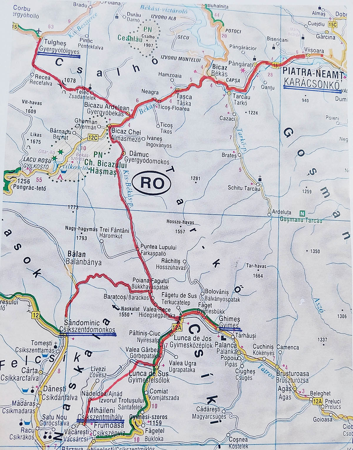 Az Ajnádi Réhnél kapaszkodunk fel a Csíki-havasokba, majd Utusajján ereszkedünk be Görbepatakára. Őrhegy mellett elhaladva Tatros mentén folytatjuk utunkat. Hidegségnél jelentős útkereszteződéshez érünk: jobbra az út folytatódik Bákó felé, balra letérve Karácsonkőre juthatunk. Utunkat Hidegségpatakán folytatva, balról becsatlakozik a Jávárdipatak mentén Csíkszentdomokosról érkező, erdei út, a „csángók útja”. Ezen kellett volna megérkezzen a menekülő Báthori András fejedelem is, talán így kerülve ki a történelmi modellünkben még létező Ajnád – Ré(h)-i útellenőrzést. Továbbhaladva észak felé az alábbi kisebb-nagyobb településeket találjuk: Bükkhavaspatak, Farkaspalló, Gyergyódomokos (Damuc), Almásmező (Cheile Bicazului), Gyergyóbékás (Bicaz Ardelean). Gyergyóbékásnál lehetett a második fontos útkereszteződés, hiszen itt értek össze a Karácsonkőre tartó, Csíkból és Tölgyes felől érkező utak.