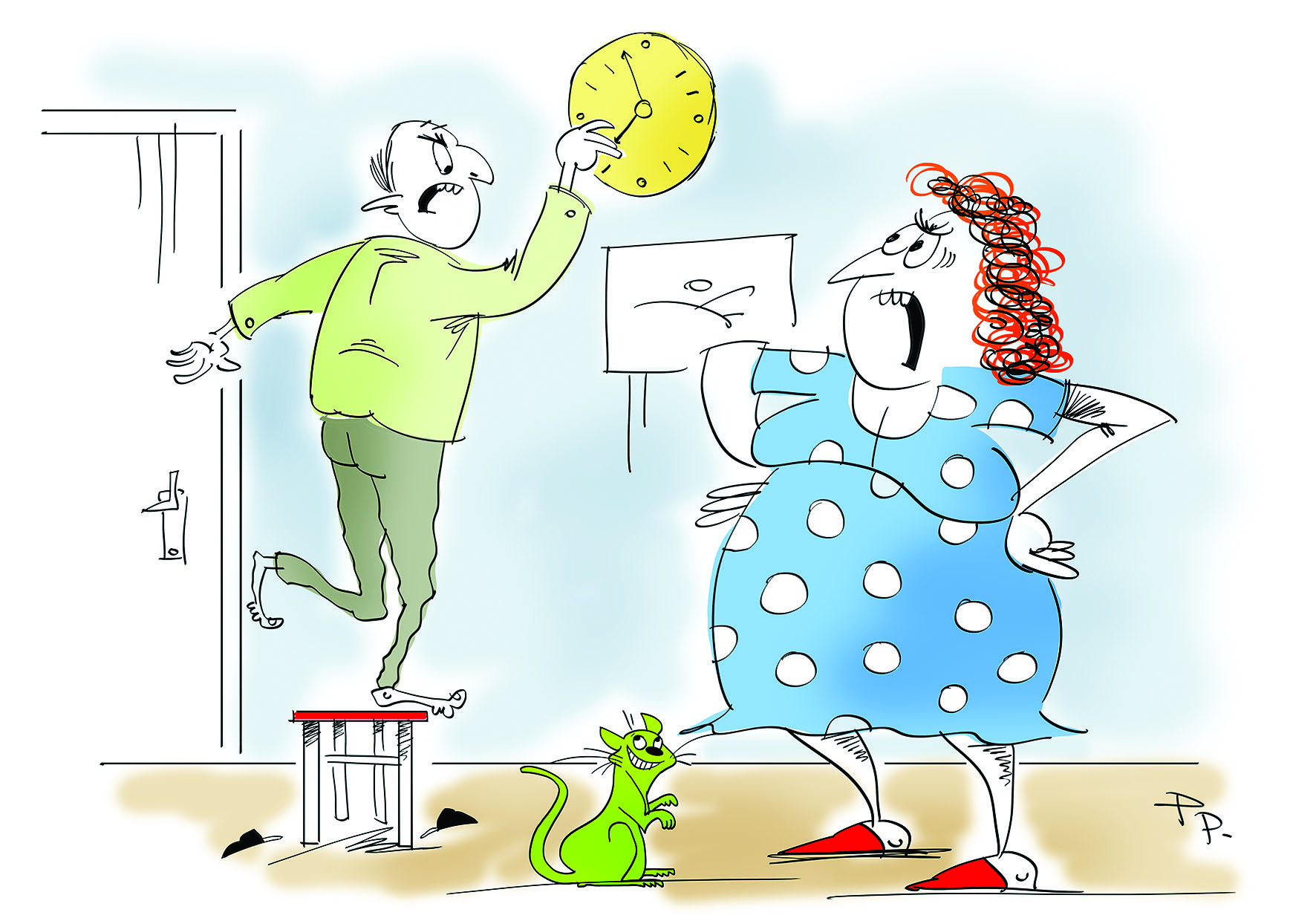 – Csak egy órát kell visszavinni az órát, még meddig tekered?