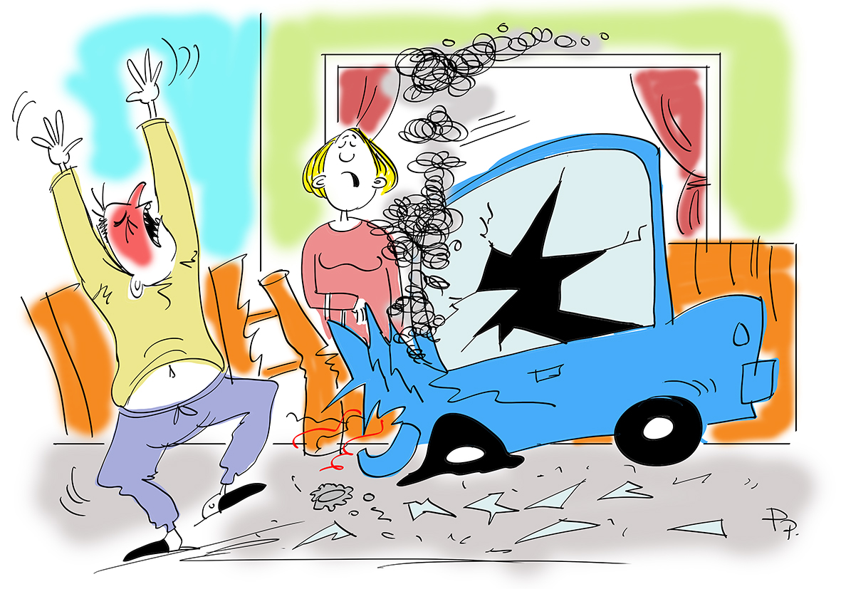 – De mafla vagy, Margit! Egynapos a kocsi, és már összetörted!