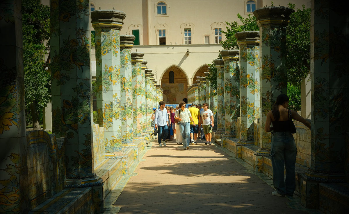 Az erőd alatt a San Martino-monostor áll, ide is bemegyünk, és még nagyobb döbbenettel vesszük sorra a komplexum termeit. A 14. századi épület gótikus stílusú, de barokk elemekkel díszített falai szemkápráztatóak.