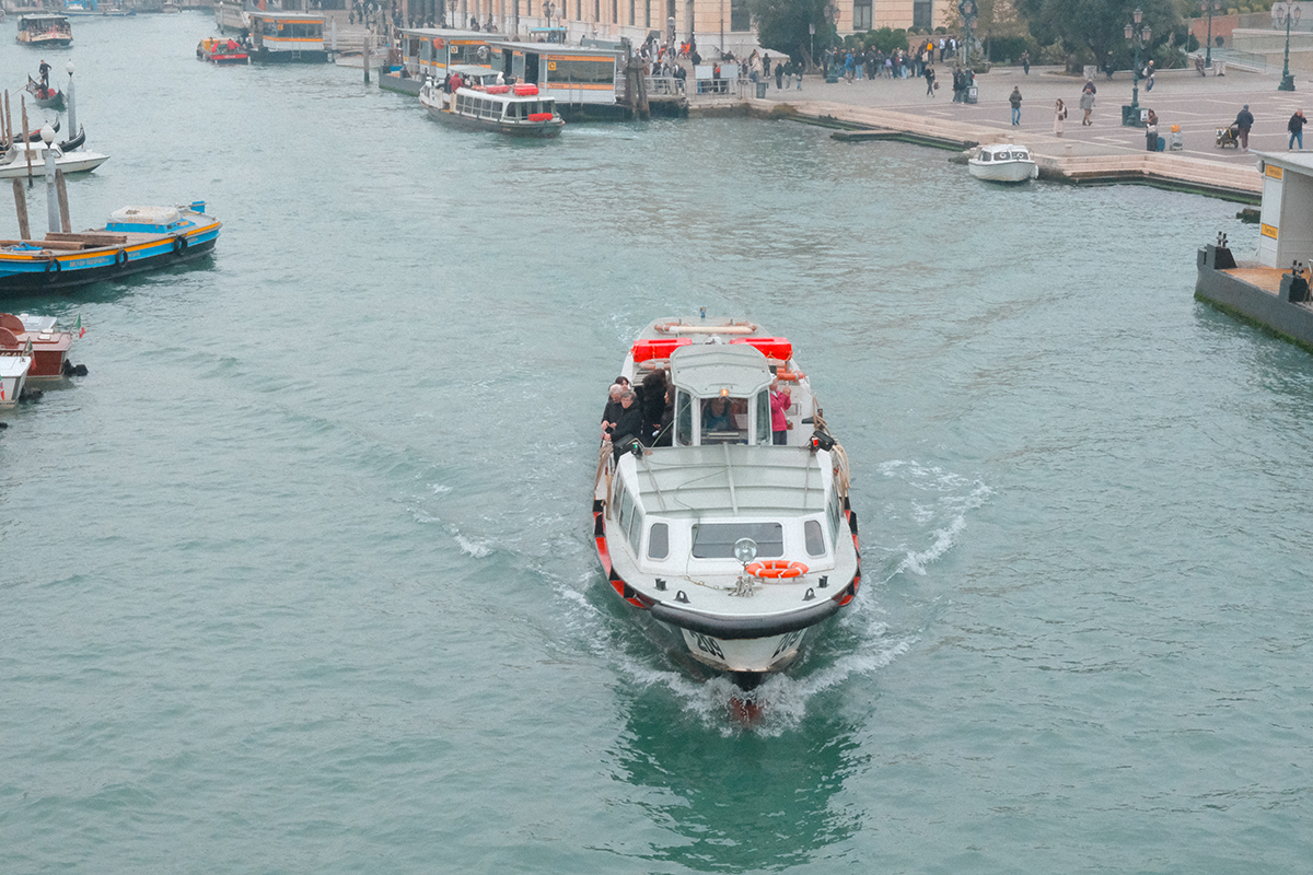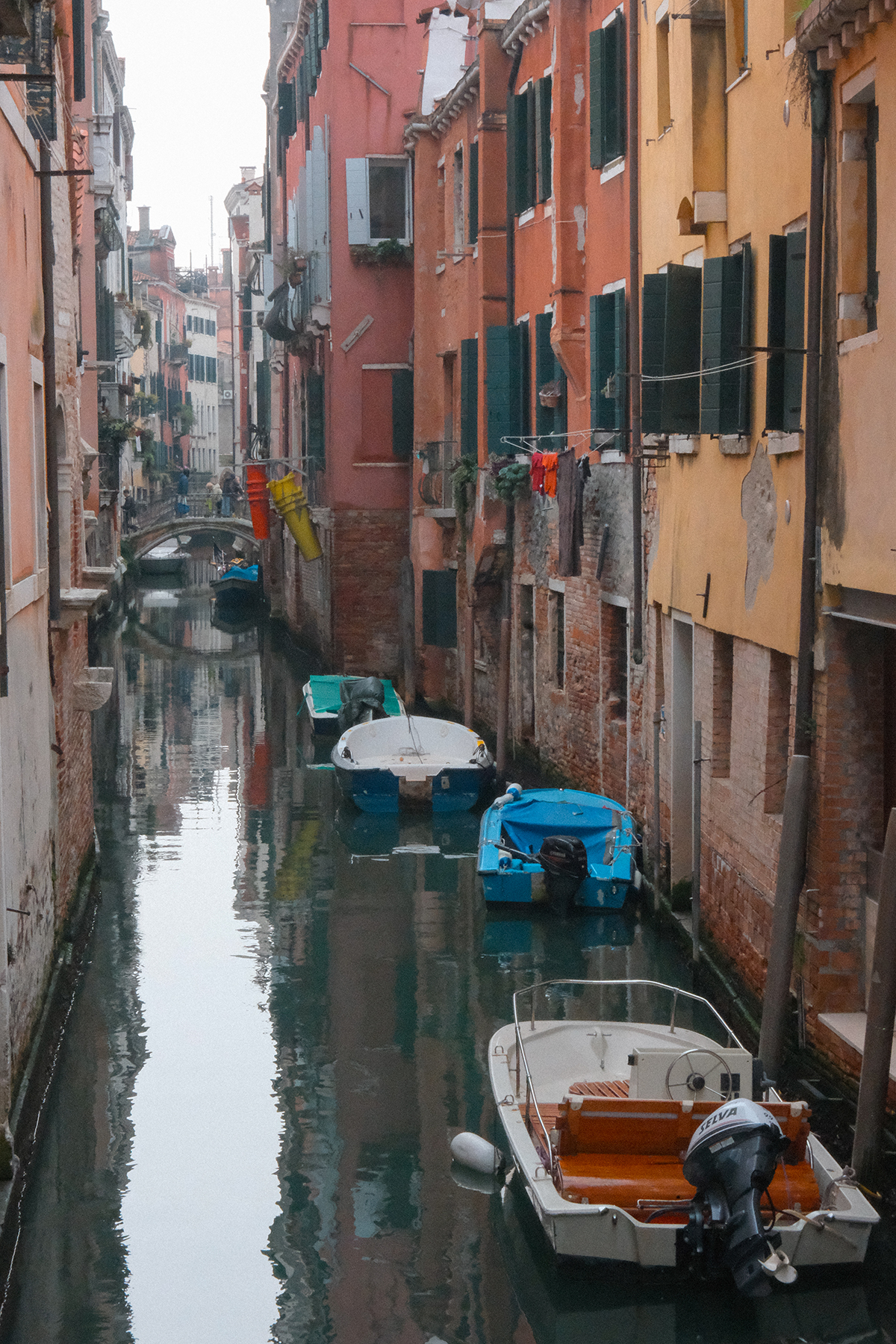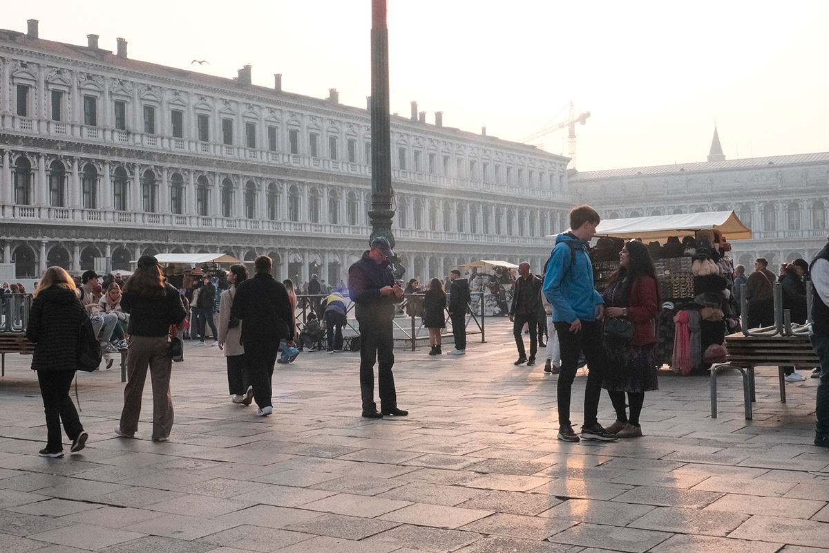 Kora reggel érkezem meg, a szürkületben csipásan pislogok – sehol tenger, macskaköves sikátorok, gondolák. Összezavarodva forgatom a térképet. Végül kiderítem, hogy a 2-es járattal lehet a „szárazföldi” negyedből a képeslapokról ismert óvárosba jutni. A negyedórás út alatt heringekként passzírozódunk össze sok-sok turistával. Sercegnek a füsskabátok – Velencében eső, hideg és zuzmarás télszag fogad. Nápoly szeptemberi melegéhez képest meglehetősen fogkocogtató az idő.