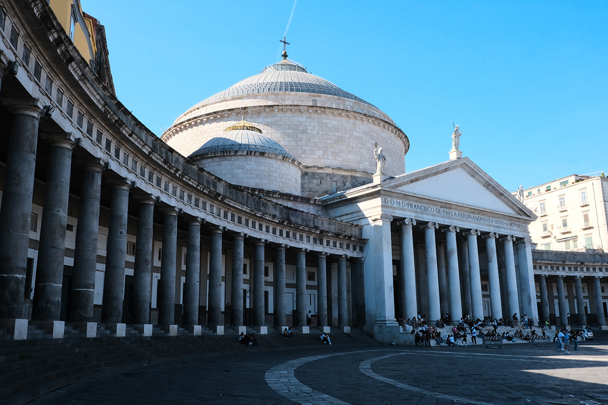 A hatalmas, kör alakú téren mindenhol turistacsoportok, nyelvek és világok sokasága, hátraszegett, forgolódó fejek próbálják befogadni a megszokhatatlan látványt. Azon kapom magam, hogy én is velük együtt csodálom. Mesélés, mutogatás közben ugyanúgy meglepődöm Nápoly ékszereinek ragyogásán, mint az, aki először látja.