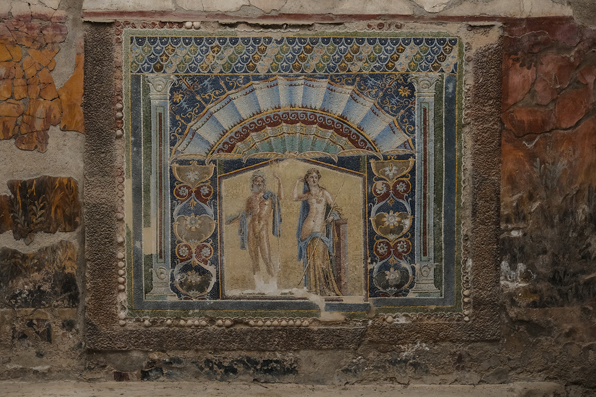 Vasárnap a Herculaneum romjai között találkozunk egy professzorommal, aki jó pedagógusként utánaolvasott az ókori város történetének. Hála neki, hátradőlhetek egy kicsit, és átadhatom a csoportvezető szerepét néhány órára. A város a római elité volt, jóval kisebb, de sokkal gazdagabb, mint Pompeji. Templomok, kantinok, malom, lakóvillák sorait szemléljük. Még a romokon is jól látszik, milyen pompában éltek itt egykor.