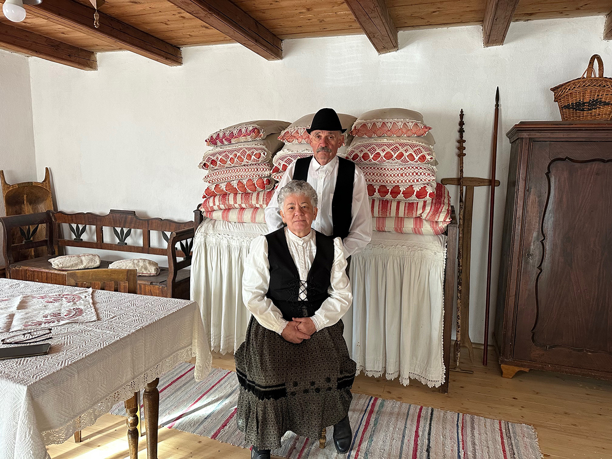 Az abásfalvi ház 1902 körül épülhetett, Jolánka apai nagyapja, Szőcs Lajos építette. A ház nem csupán kő és gerenda: a stafírung, a vetett ágy tizenkét párnával, a kézzel varrott abroszok, falvédők, ágyterítők mind-mind családi kincs, átmentett örökség.