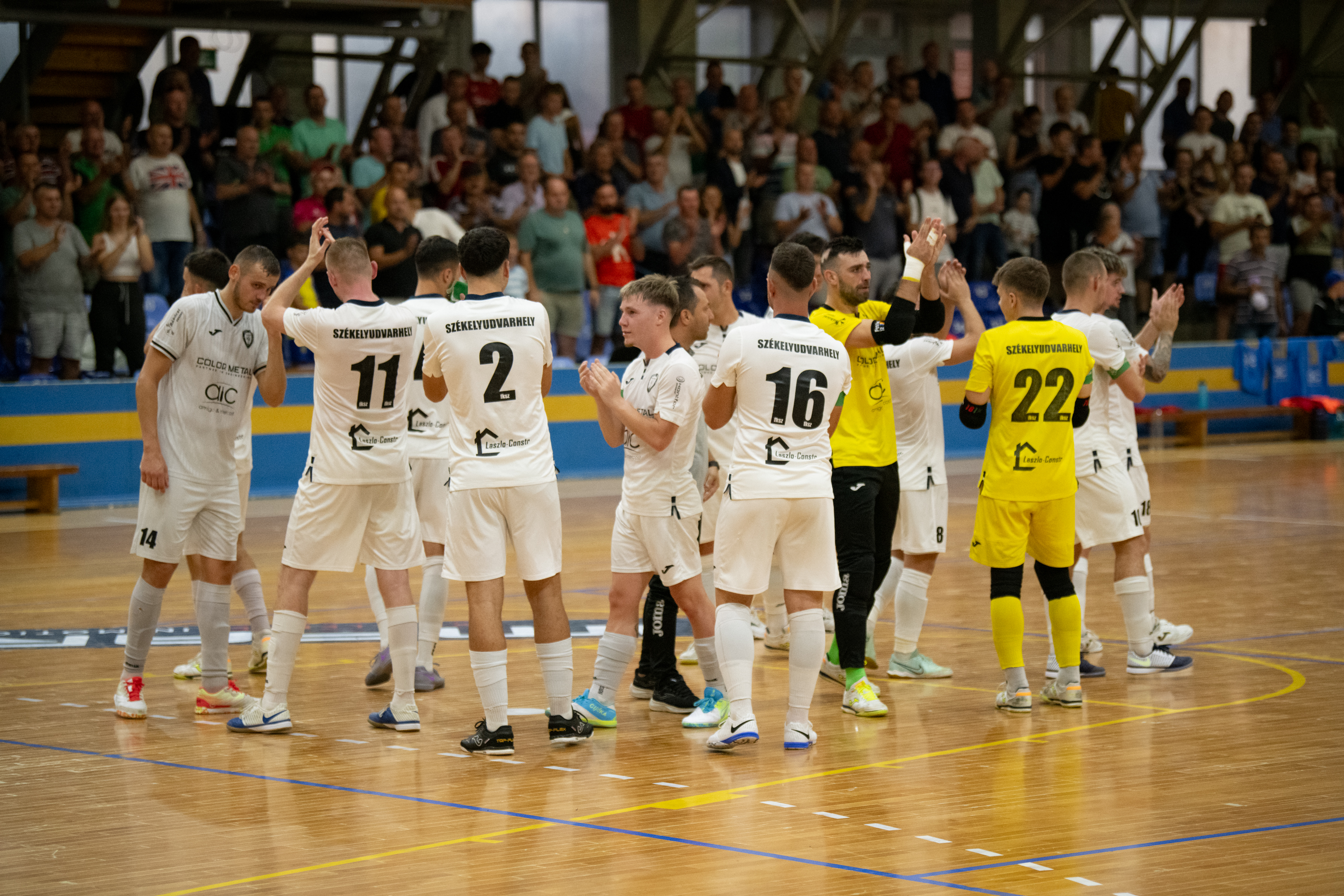 Hétfő este az udvarhelyi sportcsarnokban a Futsal Klub Székelyudvarhely a Marosvásárhelyi VSK csapatát fogadta a teremlabdarúgó 1. Liga felsőházi rájátszásának 7. fordulójában. A felek legutóbbi kupameccséhez hasonlóan a vendégek ezúttal is tartalékosan érkeztek, mégis korán betaláltak: a 2. percben Toader spiccel lőtt a bal alsóba. Az FK azonnal válaszolt volna, de Dudău lövése a kapufán csattant.