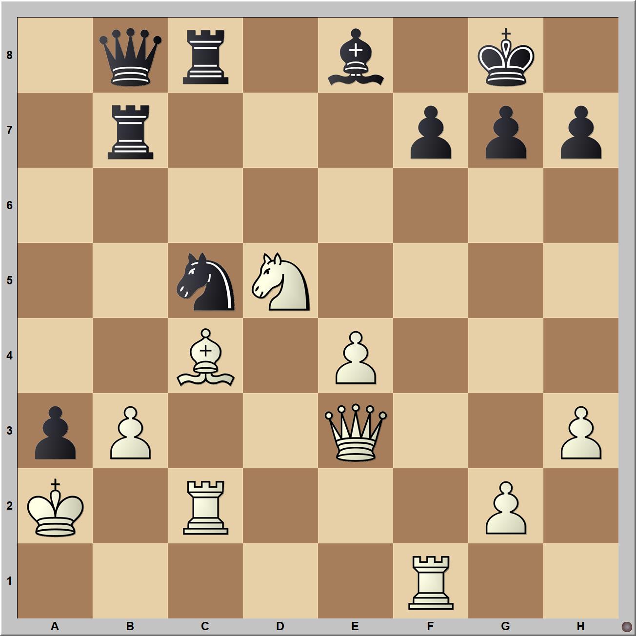 Praggnanandhaa mindhárom indiai honfitársát legyőzte és a Giri elleni veresége után mesterhármast ért el. A 11. fordulóban Fabiano Caruana (2803) ellen úgy nyert sötéttel: 32…Hb3!! 33.Bb1 (33.Fb3 Bc2+ 34.Fc2 Bb2+ 35.Ka1?? Ba2+!! 36.Ka2 Vb2 matt vagy 35.Ka3 Bc2 sötét előnyével) Fa4 34.Fd3 Hc5 35.He7+ Kh8 36.Bb7 Vb7 37.Fa6 (37.Hc8 Fc2 nyer) Ve7!!, és világos feladta (0-1).