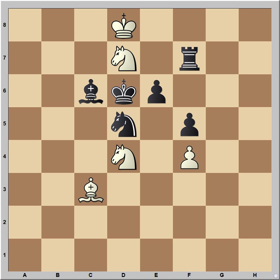 1.d4 d5 2.Hc3 Hf6 3.Ff4 (a német MegaDatabase közel 25 ezer játszmát említ ezzel a kezdéssel, mely a London-rendszerre hasonlít) c6 4.e3 Hbd7 5.Hf3 e6 6.Fd3 Fe7 7.Vd2 (az idén az Ilinca-Lazniewska internetes partiban 7.0-0 0-0 8.Be1 Be8 9.e4 de4 10.He4 He4 11.Fe4 h6 12.Vd2 Ff6 13.Bad1 Vb6 14.c4 c5 15.d5 ed5 16.Fh7+ Kh7 17.Be8 dc4 18.Vc2+ g6 19.Vc4 után sötét feladta) 0-0 8.h4 (új lépés, a másik terv 8.e4 lenne) c5! 9.dc5 Hc5 10.h5 h6 11.Bg1 Hh5 12.g4 Hf4 13.ef4 He4 (erősebb lenne 13…Hd3+! 14.Vd3 Fd6) 14.Fe4 de4 15.He4 Vd2+ 16.Hed2 Fc5 17.g5 hg5 18.Hg5 Be8 19.Hde4 Fb6? (a védelmet erősítené 19…Fe7) 20.0-0-0 e5?? 21.Hf6+!! gf6 22.He6+ Kh7 23.Bg7+ és a matt láttán sötét feladta (1-0).