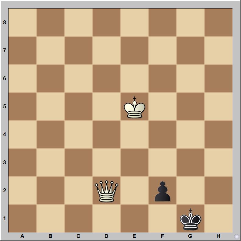 Gioachino Greco (1600–1634) művében világos nyer: 1.Kf4!! f1V+ (1…Kh1 után 2.Ve2!! nyer) 2.Kg3!! (1–0).