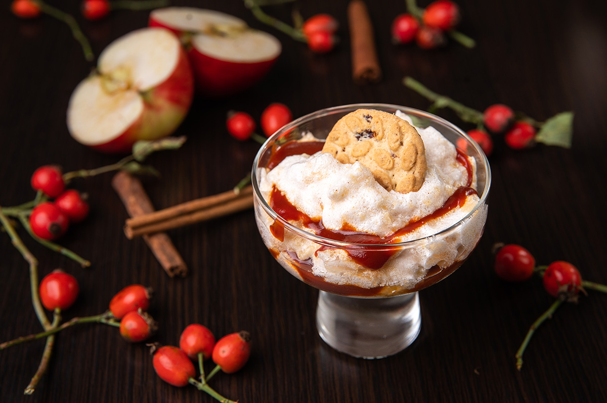 Csipkebogyós sültalma-hab