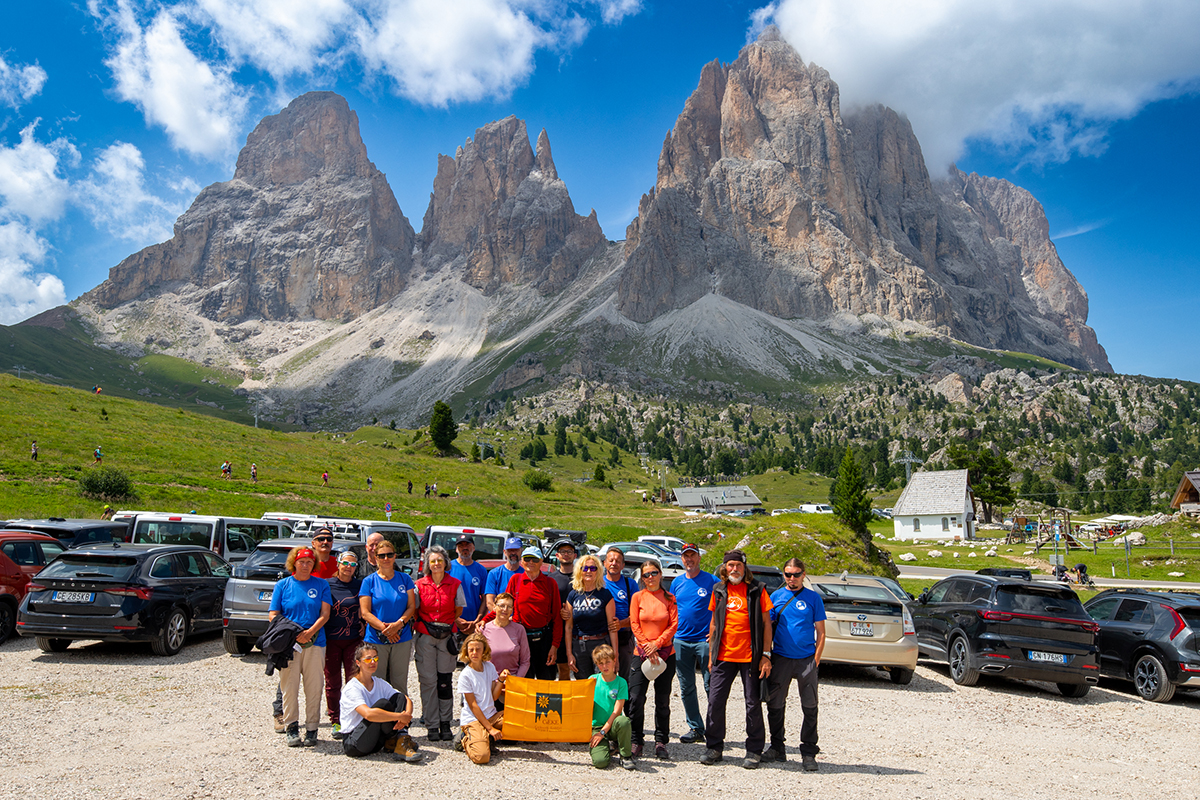 Ezen csodás sziklák világába indult húsz felnőtt és két 11 éves gyerekből álló csapatunk 2025. július 12-én reggel, Tőke Dénes túravezető szervezésében, a Csíkszéki EKE színeiben. Néhány kis pihenőt és egy szombathelyi csárdában elköltött vacsorát beiktatva másnap reggelre megérkeztünk Cortina d’Ampezzo kisvárosba, sátortáborunk helyszínére. E városka Olaszország egyik legismertebb síparadicsoma, itt rendezték meg az 1956-os téli olimpiai játékokat, és jövőre is ez a hegyi üdülő látja vendégül a jeles sporteseményt.