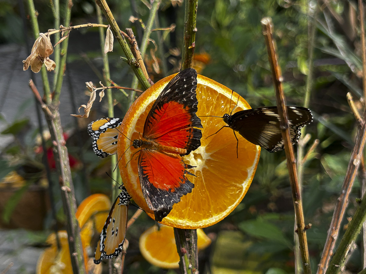 Belépve a röptérbe, párás meleg fogad, és egy szeletnyi trópusi esőerdő, mint egy zárt édenkert, dús, buja zöld növényekkel, virágokkal, egy kis tóval, repdeső és csicsergő zebrapinyekkel és a színpompás lepkékkel. A lepkék szabadon repdesnek, mint ahogy a szülőhelyükön, valahol Dél- vagy Közép-Amerika fülledt, párás erdőiben tennék. Ránk is szállhatnak, ezért érdemes figyelmesnek lenni, hogy ne kapjunk oda, mert könnyen megsérthetjük finom szárnyaikat. Augusztus elején annyi lepke élt a lepkeházban, mint még soha, több száz is akár, mert nagyon jól sikerültek a keltetések, igazi „csúcs-év” az idei – fogalmazott Kilyén Barna –, legalábbis a lepkék számát tekintve...