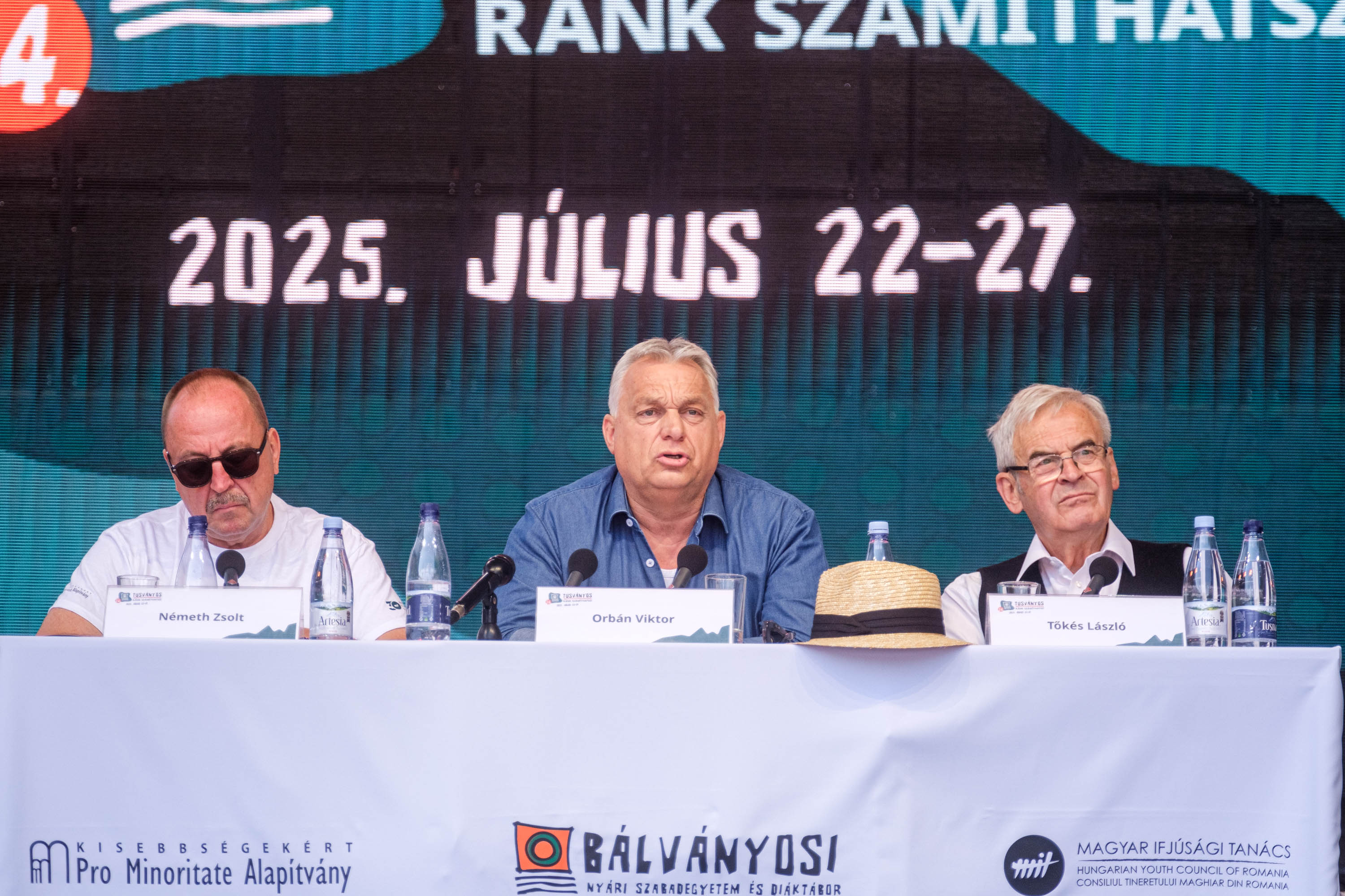 Orbán Viktor, Magyarország miniszterelnöke a szabadegyetemen tartott beszédében elsőként az aktuális politikai, biztonsági és társadalmi kérdéseket értékelte. Beszédének elején kiemelte: cikluszáró beszédre készült, de a következő Tusványoson ciklusnyitó beszédet szeretne tartani. Szerinte, ha most lennének a magyar parlamenti választások, a Fidesz 106 egyéni körzetből 80-at megnyerne. Orbán Viktor szerdán késő este Ilie Bolojan román miniszterelnökkel találkozott, erről is beszélt előadásában. A román miniszterelnököt „nehézsúlyú” politikai szereplőként jellemezte, akivel kölcsönös érdeklődés mutatkozott a román–magyar együttműködés iránt.
