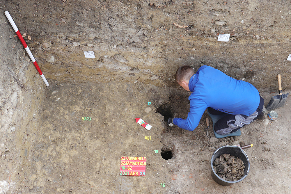 Elmondta azt is, hogy ezen a helyszínen már nagyobb csapattal, kolozsvári és budapesti egyetemisták részvételével folyt a munka, négy szelvényt nyitottak meg, és komoly mélységig (több mint 7 méter) is leástak az egykori bejárat környezetében.