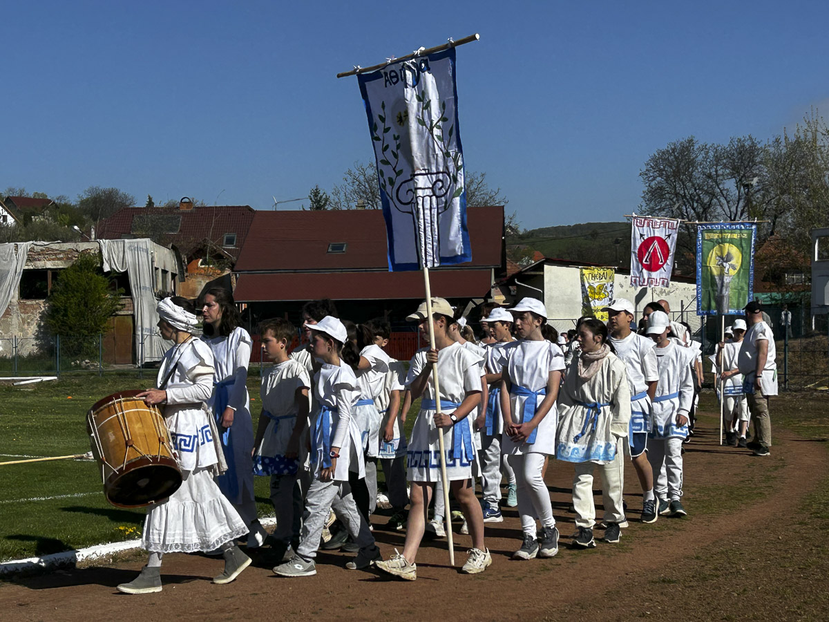 A megszokott iskolai rendezvényektől eltérő hangulatú eseményre kapott meghívást lapunk: a Kerekerdő Waldorf Egyesület és a város szomszédságában, Székelylengyelfalván működő iskola látta vendégül idén az erdélyi Waldorf-tanintézetek küldöttségeit, Kolozsvárról, Marosvásárhelyről és Csíkszeredából érkeztek versenyzők és vendégek az olimpiai játékokra. A szombati egész napos elmélyült közös felkészülés, edzés után vasárnap a városi sportpályán vonultak fel a korhű ruhába öltözött, egy-egy ókori görög városállamot képviselő csapatok, hogy a klasszikus olimpiai számokban mérettessék meg magukat. Az ókori olimpiai játékok az ember testi és lelki harmóniáját, az erő, a szépség és igazság egységét jelenítették meg.