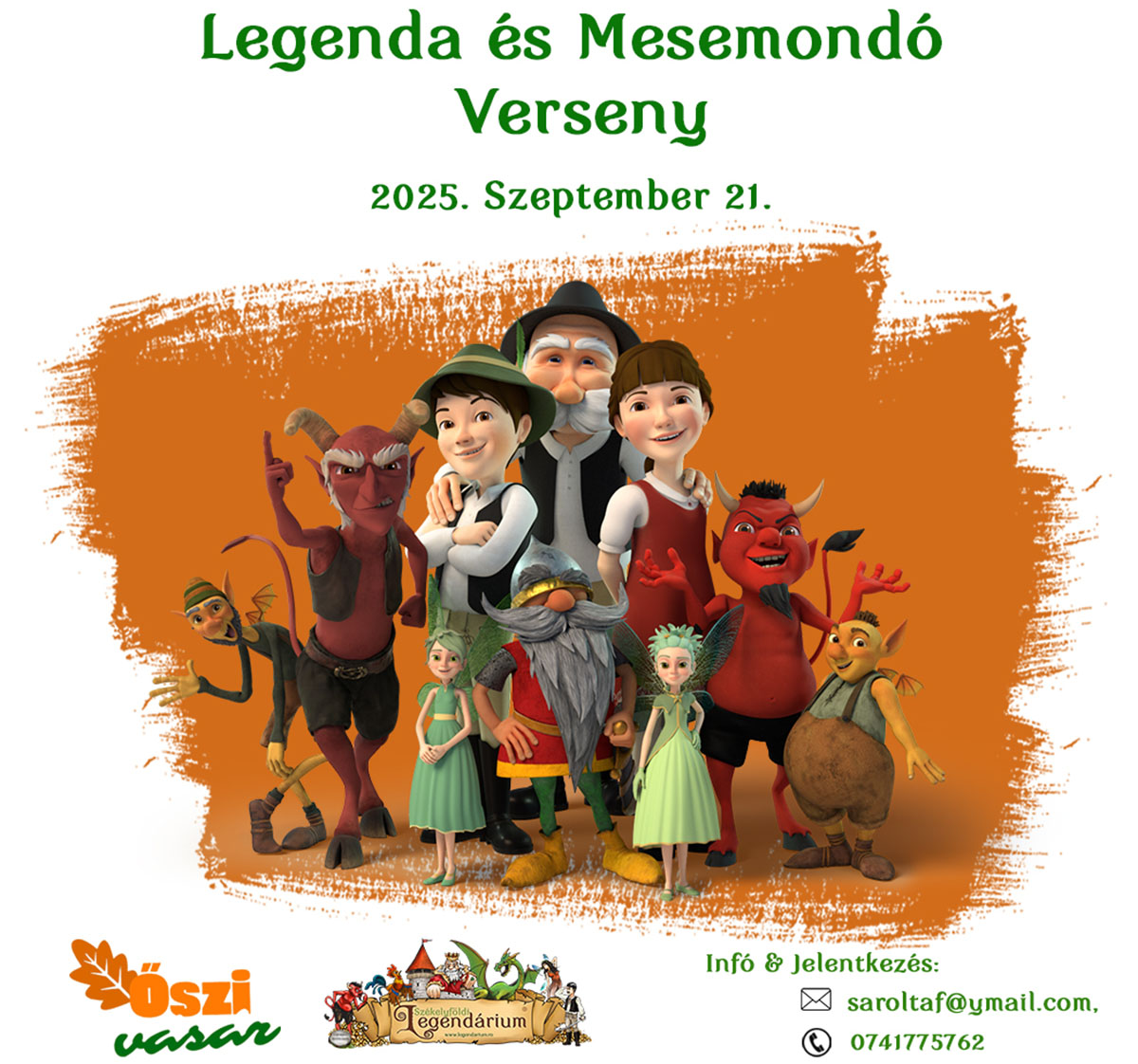 A versenyt vasárnap 13 órától szervezik meg a sportcsarnok mellett felállított színpadon: aki mesét vagy legendát szeretne mondani, a mesélőszékbe ülhet, a feldolgozások előadói a teljes színpadot birtokukba vehetik. A bemutatókat a Legendárium mesesorozatnak hangjukat kölcsönző előadókból álló zsűri értékeli, a legügyesebbeket értékes ajándékcsomagokkal jutalmazzák. A jelentkezési határidő szeptember 18., nevezni egyénileg vagy a város óvodáiban, iskoláiban lehet.