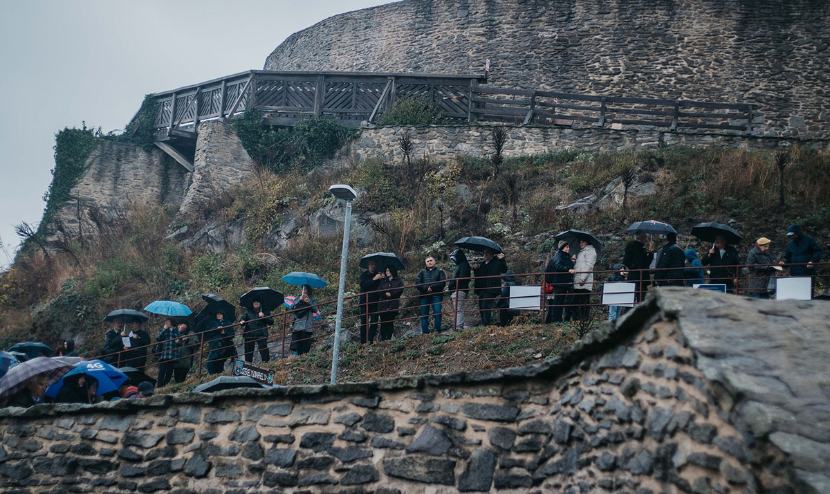 Idén a dévai vár felújítási munkálatai miatt a vár egyik teraszára érkezett a közel ezer zarándok. Déva vára 25 éve az a hely az unitáriusok számára, amely a találkozás mellett évről évre lehetőséget teremt a mélyebb szembenézésre az unitárius értékekkel, önmagunkkal, a mellettünk állókkal és Istennel. A hegy lábánál gyülekeztek, ahol Andrási Benedek, a Magyar Unitárius Egyház főjegyzője mondott imát, és kért áldás a zarándokok elindulására és megérkezésére. Ezt követően a zarándokcsoportok felvonultak a dévai vár egyik teraszára, ahol az 1579 novemberében vértanúhalált halt Dávid Ferenc unitárius egyházalapító püspökre emlékeztek.