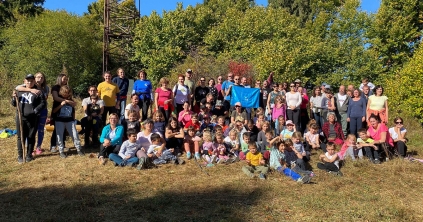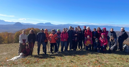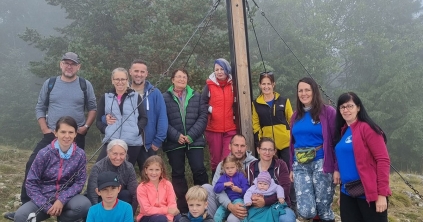 Az 1935 méter magasan fekvő Paltina-nyereg már nagyobb teret adott a lökdösődő kedvű szélnek, magunkra is szedtünk még egy réteg ruhát. Itt Bodó József tanár úr egy rövid történelmi ismertetőt tartott, majd nyugati irányba felkapaszkodtunk a Godján-hegység főgerincére, közeledve lassan utunk céljához, a Paltina-csúcs 2152 méter magasan fekvő sziklájáig. Itt egy hosszabb pihenőt tartottunk, elfogyasztottuk jól megérdemelt elemózsiánkat egy szélárnyékos helyen, gyönyörködve a kilátásban, és elkészült a csúcsfotó is a népes csapatról.
