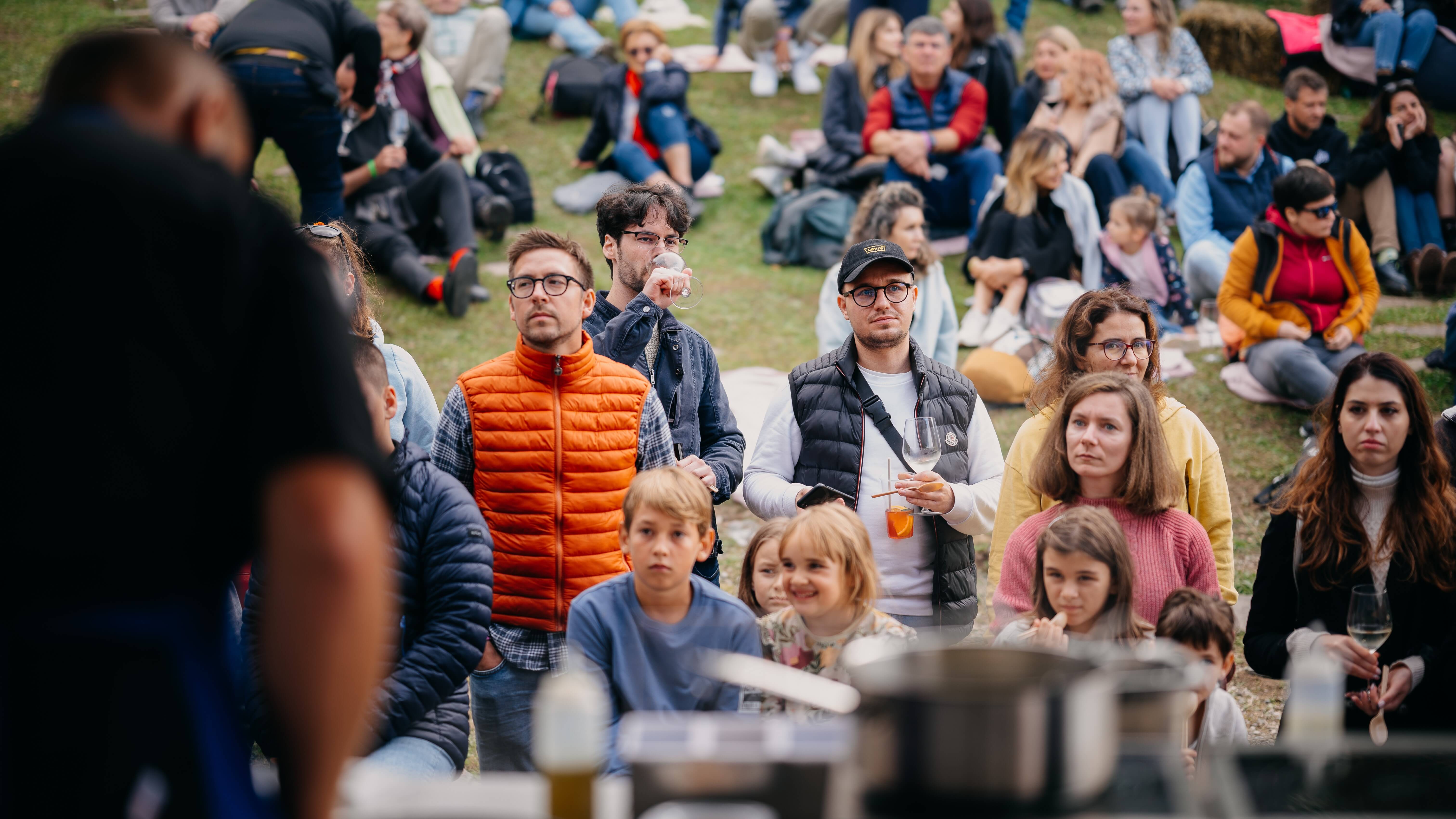 Ínycsiklandozó illatok és békés hangulat fogadta a betérőket a borospataki skanzen udvarán, ahol mindenki megtalálta kedvenc ételeit és italait. Ottjártunkkor épp Berecz András mesemondó és népdalénekes szórakoztatta a népes közönséget, amely a fűben ülve hallgatta az előadót. Az enyhén szeles, de napsütéses őszi időjárásnak is köszönhető, hogy kellemes hangulat volt, és a legkisebbek is jól érezték magukat, hiszen külön udvarrész, játszótér volt számukra elkülönítve.