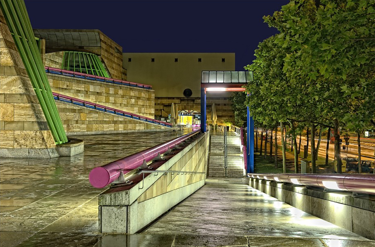 Ezt az épületet a második világháborúban lerombolták, majd az ötvenes években a barokk stílust lazán átértelmezve újjáépítették. Melléje emelték a jeles angol építész, James Stirling úgynevezett kiegészítő épületét, az új galériát, ezáltal Európa egyik legszebb múzeumává – s talán a leglátogatottabbak egyikévé – vált.