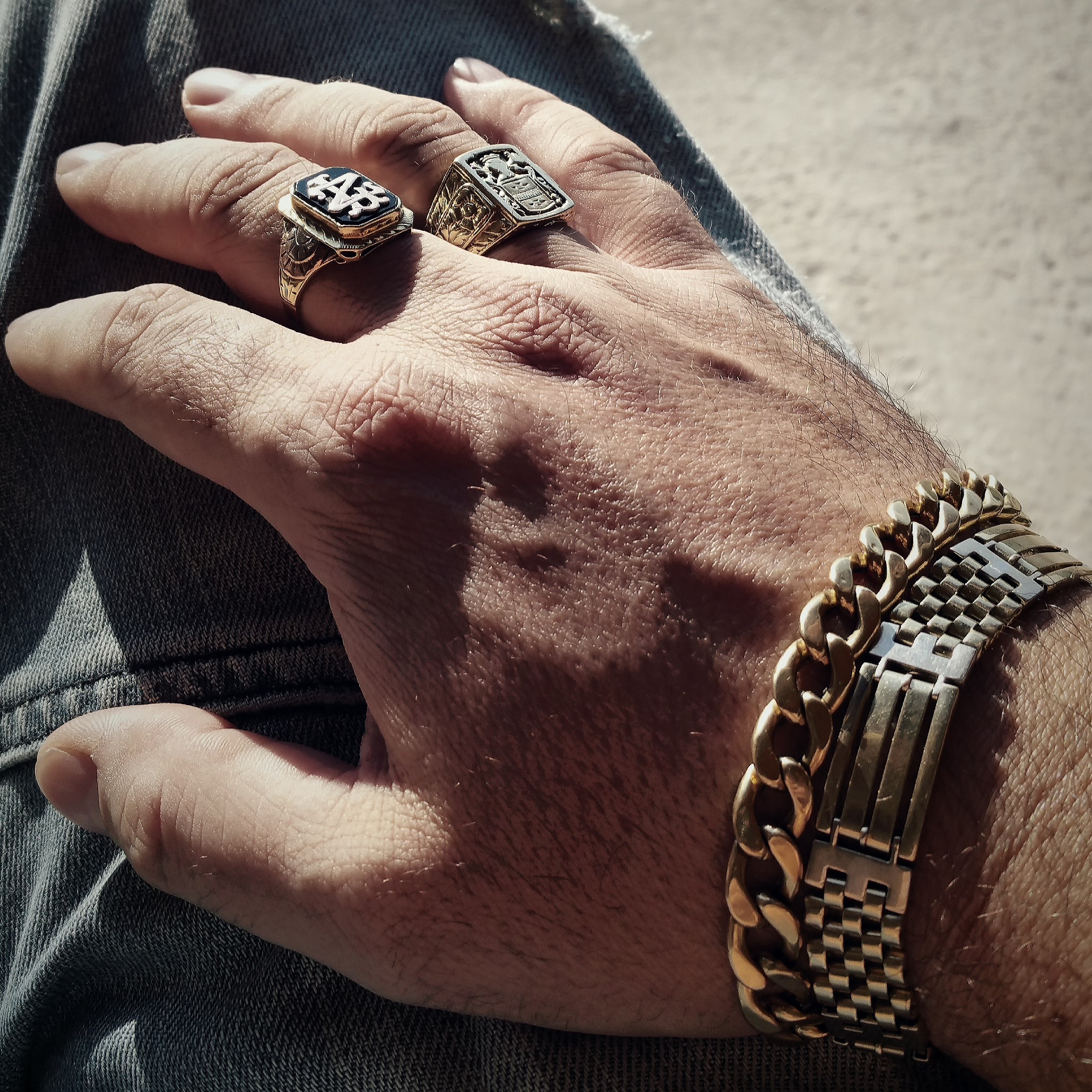 Gyűrűk: bár a pecsétgyűrűk vagy azok korszerű változatai még mindig népszerűek, 2025-ben trendi több gyűrűt viselni egyszerre. Ezek lehetnek simák, gravírozottak, de akár féldrága- vagy drágaköves darabok is. Nincs megszabva, hogy melyik kéz melyik ujjára mit illik húzni, a szigorú szabályok helyét az egyediség vette át.