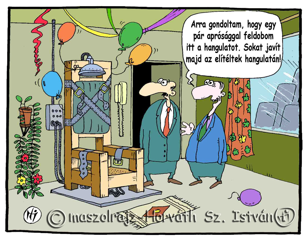 – Ez mindennapos volt, mert a tudósításon kívül még naponta kétszer kellett viccesnek lennem. Fogalmam sincs, hogy én azt hogyan tudtam éveken át csinálni. Mindennap ki voltam égve, és úgy érzem, csak néha-néha volt egy jó poénom. Nagyjából minden tizenötödik rajzomat tartottam jónak, viszont jó volt a szerkesztőségi hangulat, sok poént inspiráltak a beszélgetéseink.