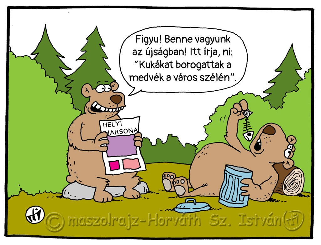 – Igen, szombatonként a Népújságban az Alulnézet rovatban, és a Csíkszereda havilapban is közlöm a karikatúráimat, de nehéz úgy megrajzolni ezeket, hogy közben egyedül van. Viszont úgy látom, hogy a közösségi médiában csütörtökönként megjelenő Hamm Comic mintha kezdene a márka részévé válni, és örülök ennek.