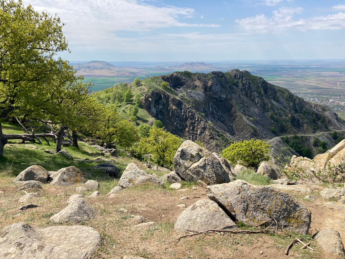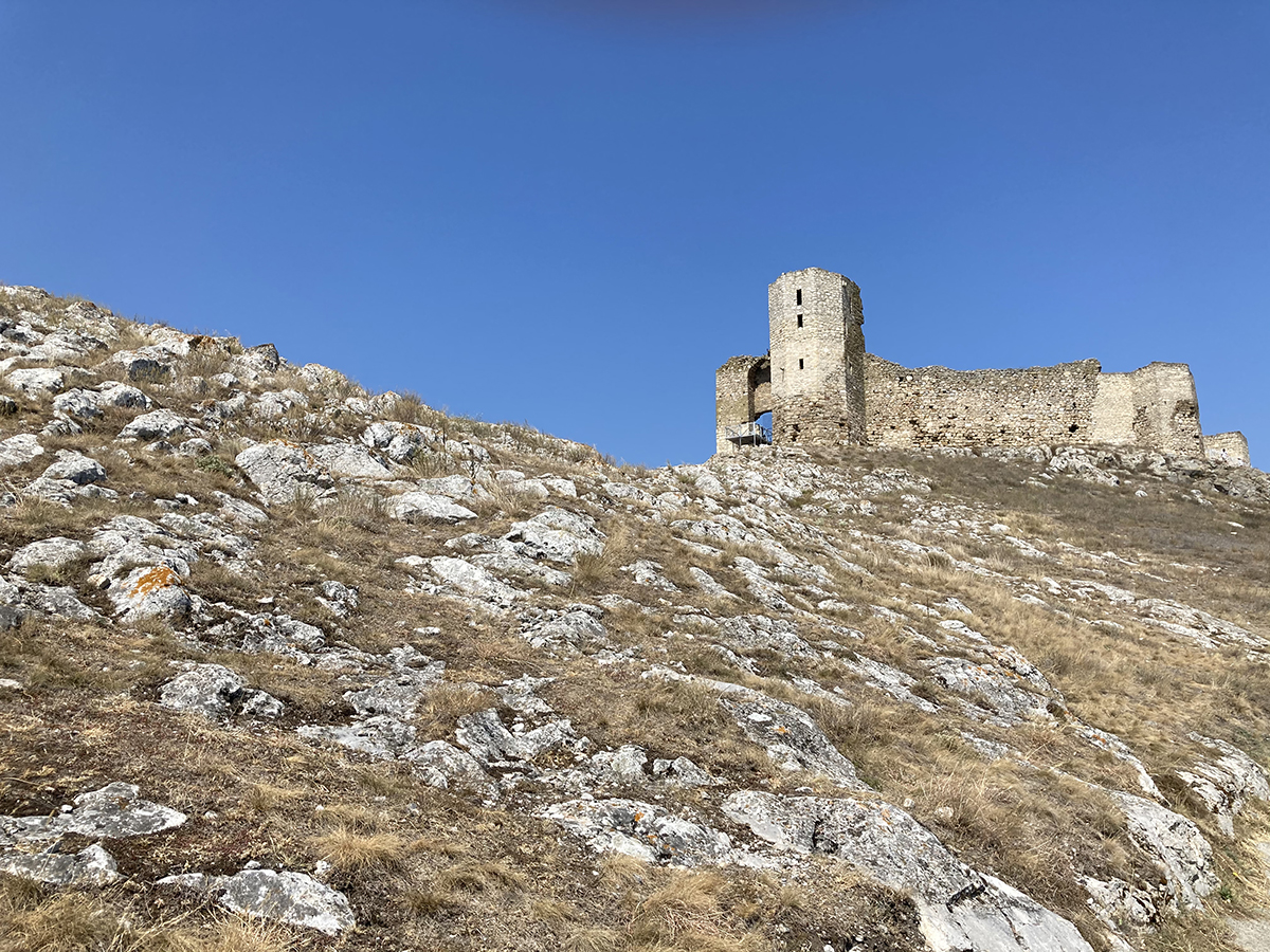 Apropó, Măcin-hegység. Ez az ország legidősebb hegysége, több száz millió éves izgalmas kővilág, hihetetlen gazdag élővilággal (több mint háromezer növény- és állatfaj él itt). Igencsak lekopott az évmilliók alatt, legmagasabb pontja, a Greci- vagy Tutuiatu-csúcs mindössze 467 méter magas. A Hargitához képest domb, de látványban mégis olyan helyenként, mint a Fogarasi-havasok kicsiben: meredek lejtők, éles, keskeny gerincek, érdekes sziklaalakzatok, hegyes csúcsok fogadnak, ha elindulunk egy-egy túraúton. A szintkülönbséget azért nem kell lebecsülni, mert 30-40 méteres tengerszint fölötti magasságról indulnak az ösvények, szóval itt is van, mit mászni fölfelé. A panoráma pazar, és ha késő tavasszal járunk arra, jó eséllyel csodálhatjuk meg a sztyeppi bazsarózsamezőket, s ha szerencsénk van, jókora dobrudzsai teknőssel is összefuthatunk. A túrautak többsége Greci település közeléből indul, itt van egyébként a Măcin Nemzeti Park látogatóközpontja is.