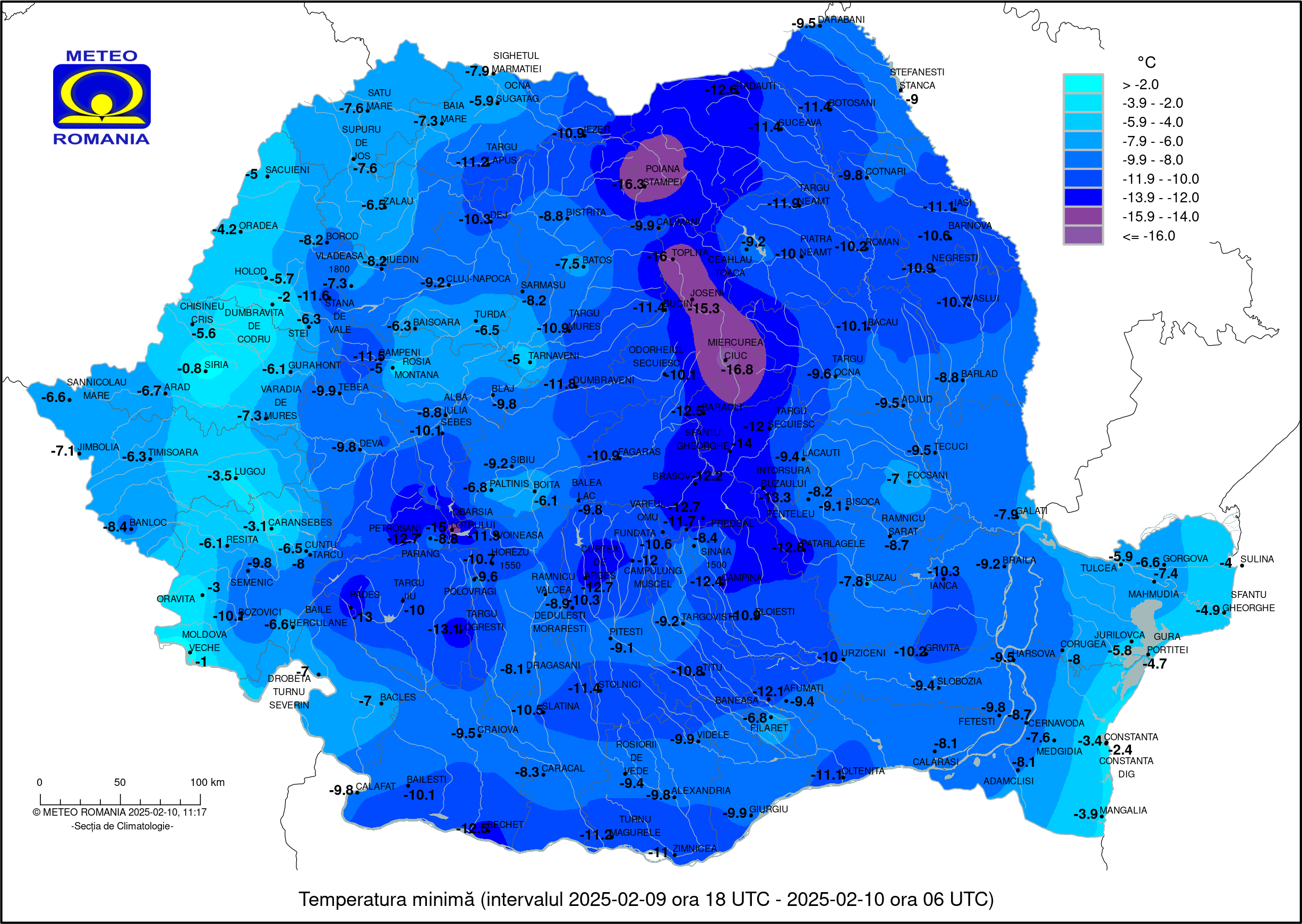 Fagyosan kezdődött a hétfő reggel szerte az országban, de a legalacsonyabb hőmérsékletet, -16,8 Celsius-fokot Csíkszeredában regisztrálta az Országos Meteorológiai Szolgálat. A hargitai megyeszékhelyen kívül a megye más településein is dermesztő hideg volt: Maroshévízen -16, Gyergyóalfaluban pedig -15,3 fokot mértek.