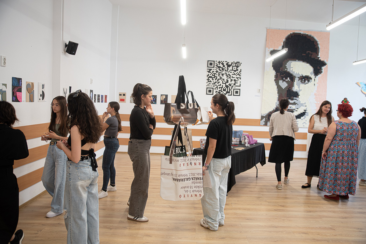 A kiállításon különleges ékszereket, táskákat, pénztárcákat, ruházati cikkeket, dekorációs tárgyakat, dekoratív játékokat láthatunk, de figyelemre méltó egy hatalmas Charlie Chaplin-arckép, valamint az iskola honlapjának QR-kódja is, melyek forex lemezből készült alkotások.