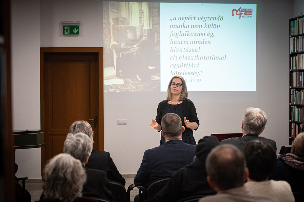 – Azzal a gondolattal jöttem ide, hogy feltegyem a kérdést: Márton Áron püspök útmutatásait tekintve, vagy azokból kiindulva mi nekünk ma a feladatunk. Márton Áron püspök azt mondta, hogy az egyház, az iskola és az értelmiségi réteg – amibe most már hovatovább nagyon sokan beleértendők – fel kell emelje a többieket. Hogy mit kell tenni a népnevelés ügyében, azt nem fogom megmondani, talán nem is volna célra vezető, de mindenkinek végig kell gondolnia, hogy mi az, amit népnevelés, ismeretterjesztés, kultúraterjesztés területén a ránk bízott intézmények tevékenységén kívül többlet-erőfeszítéssel meg tud tenni. A művelődésnek, az értelmiségnek ki kell szállnia az elefántcsonttoronyból, és oda kell menni, össze kell gyűjteni az embereket, mert egyre kevésbé hiszek abban, hogy az online térben nagyon nagy csodákat tudnánk tenni. Kis közösségeinkben még össze tudjuk gyűjteni az embereket, tudunk beszélgetni egymással, tudunk tanulni egymástól – mondta Lázár Csilla.