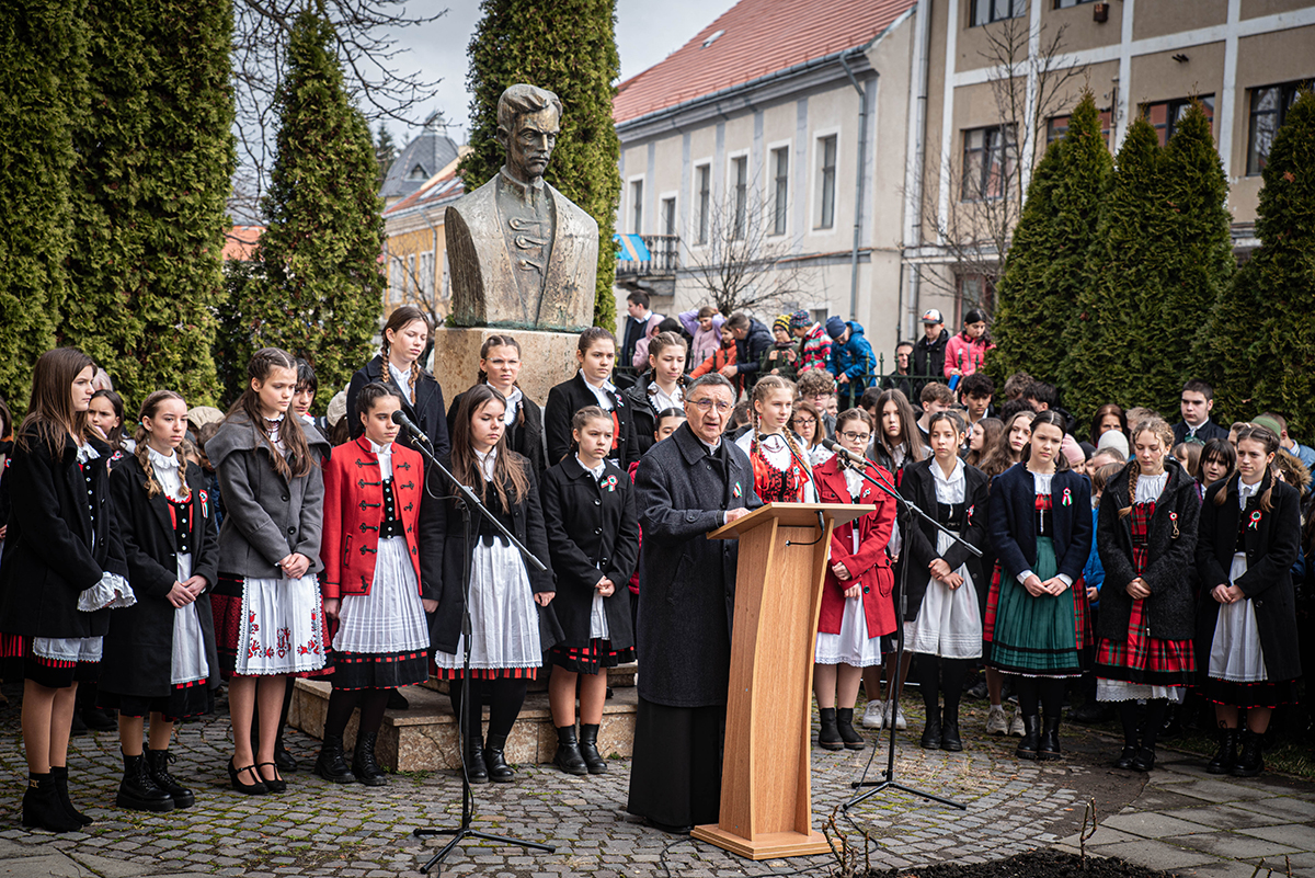 Darvas-Kozma József római katolikus esperes áldását követően Petőfi Sándor mellszobrának talapzatánál elhelyezték a megemlékezés koszorúit. Az esemény a magyar és a székely himnusz eléneklésével zárult.