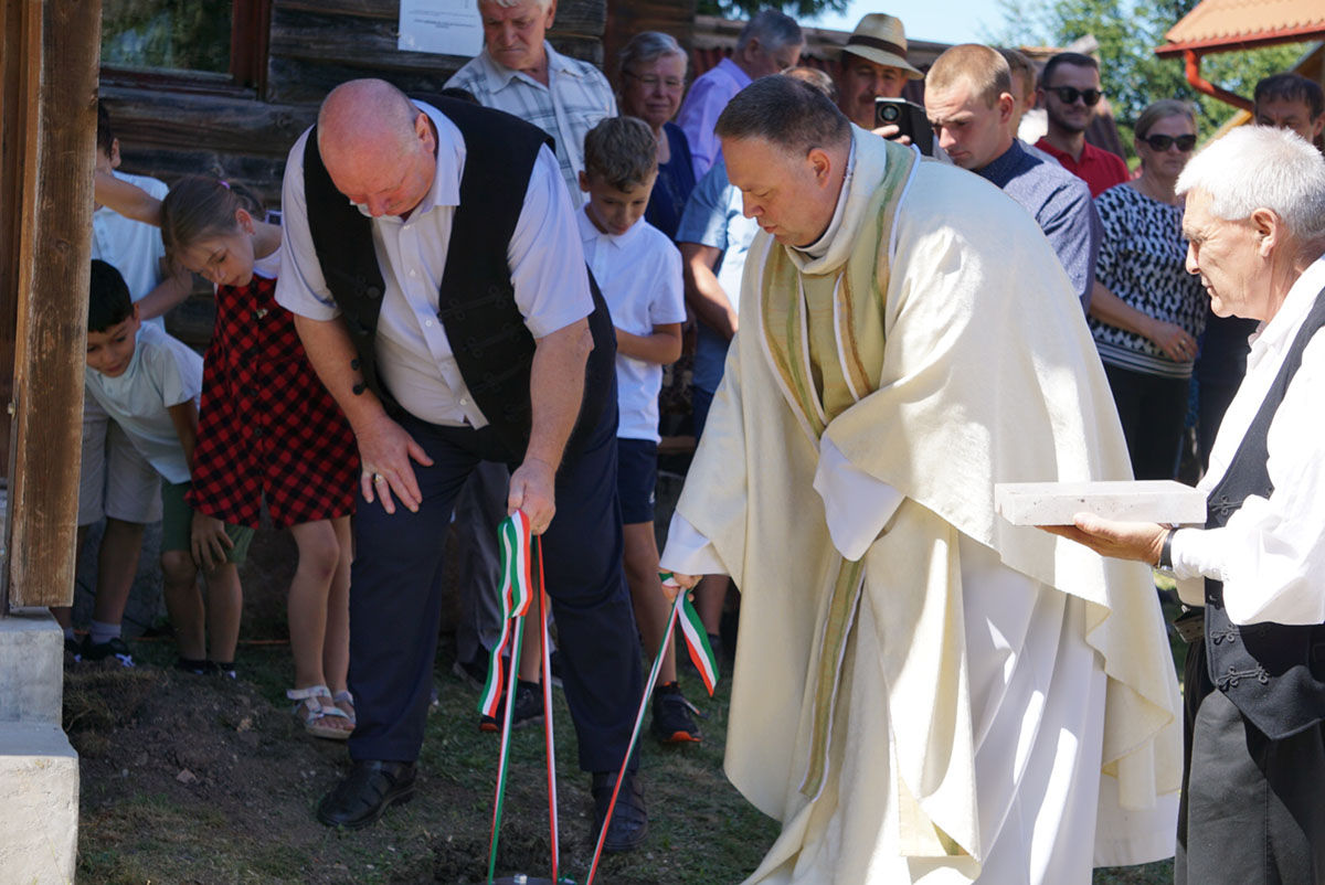 Székely Ernő, Csíkszentkirály polgármestere örömét és háláját fejezte ki, hogy a búcsús szentmise után a plébánossal közösen tehette le az új kápolna alapkövét.