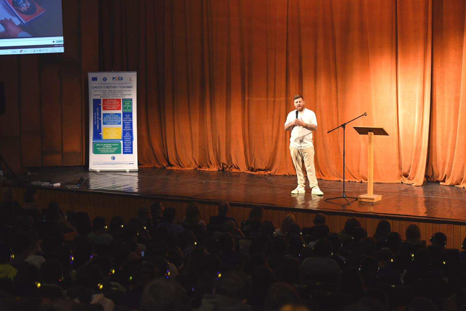 Felszólalása után a 39 éves Andrei Ștefan állt színpadra, aki 13 évesen vált szerfogyasztóvá, ami fizikai és pszichés függőséget okozott, emiatt nehéz és szélsőséges helyzetekbe került. Ő személyes történetén keresztül osztotta meg tapasztalatait a szerhasználatról és a felépülés útjáról az érdeklődő középiskolás diákokkal.