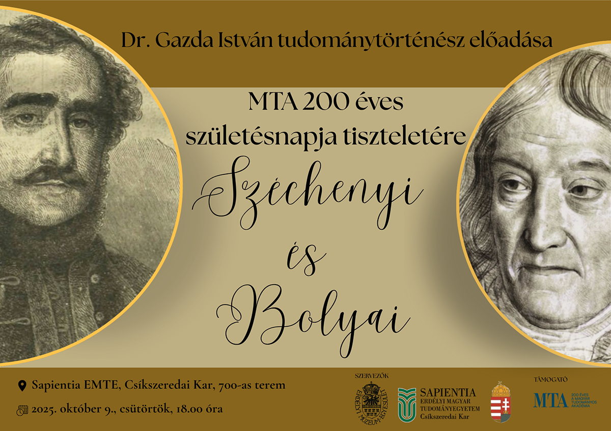 Örömmel értesíthetem arról az érdeklődő olvasóközönséget, hogy Gazda István elfogadta az EME csíki fiókegyesülete meghívását, a Sapientia Erdélyi Magyar Tudományegyetem Csíkszeredai Kara és Magyarország Csíkszeredai Főkonzulátusa égisze alatt egy nyilvános és ünnepélyes előadást tart az MTA megalakulása 200. évfordulójának tiszteletére a Sapientia egyetem Csíkszeredai Karán, a 700-as teremben, 2025. október 9-én, csütörtökön 18 órától.
