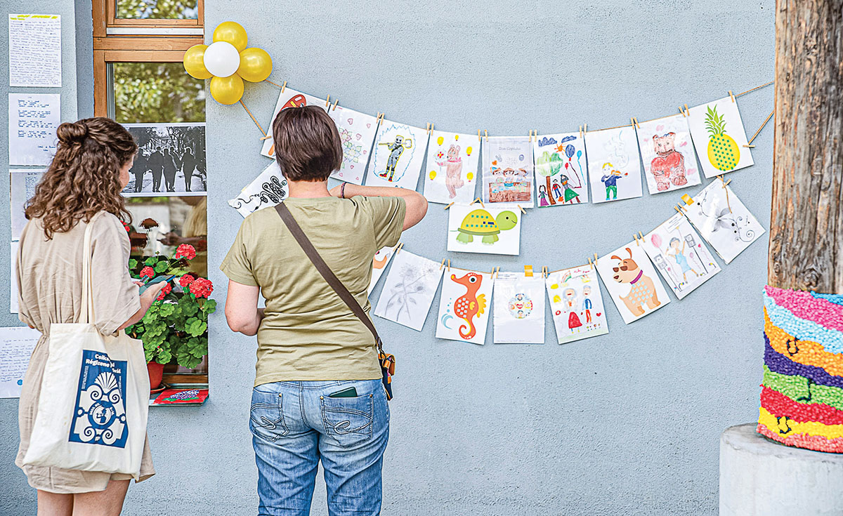 Dászkel Ildikó, a Szociális Szolgáltató Központ vezetője hívta fel a figyelmünket arra, hogy a színpadtól nem messze rajzokat, festményeket állítottak ki, amelyeket a gyermekek készítettek, illetve a tanulók saját szerzésű verseinek kéziratait is kifüggesztették. Dászkel Ildikó elmondása szerint ugyanis nem csak a színpadon előadó tehetségeknek akartak lehetőséget biztosítani, hanem az alkotóknak is.